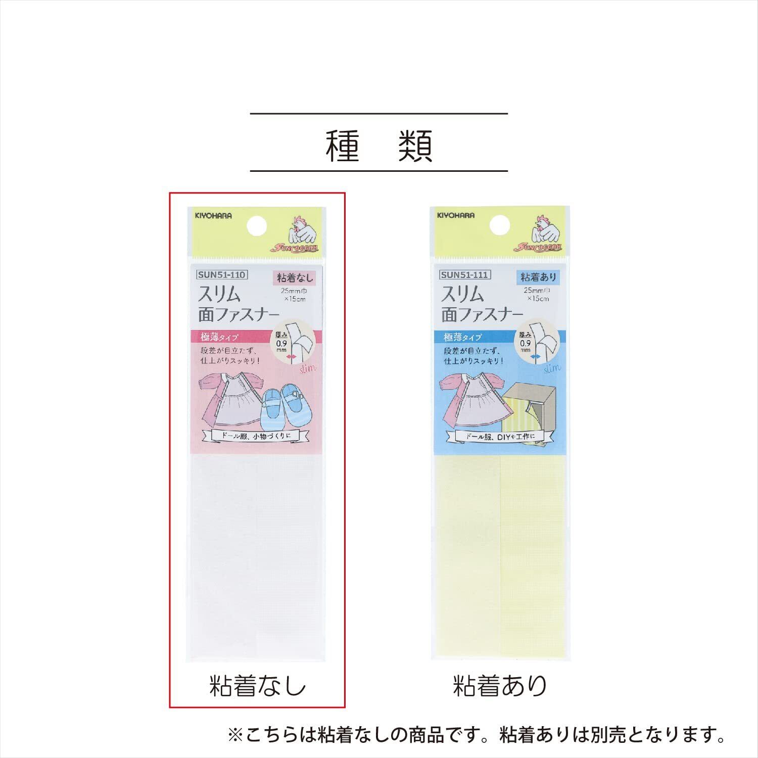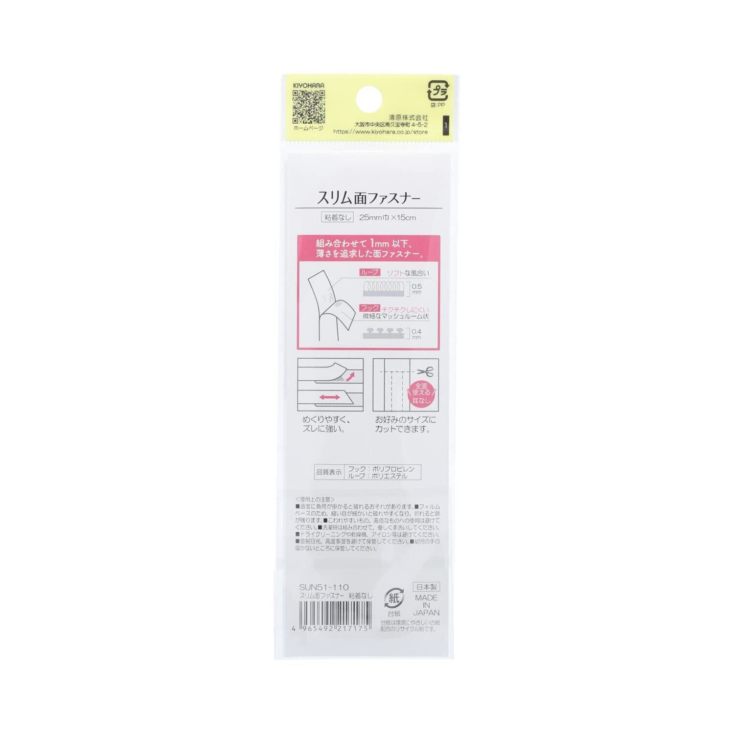 【数量限定】KIYOHARA サンコッコー スリム面ファスナー 粘着なし 幅25mm×厚み0.9mm×長さ15cmカット フック・ループ各1枚入り 白 SUN51-110 | wakuwakuland