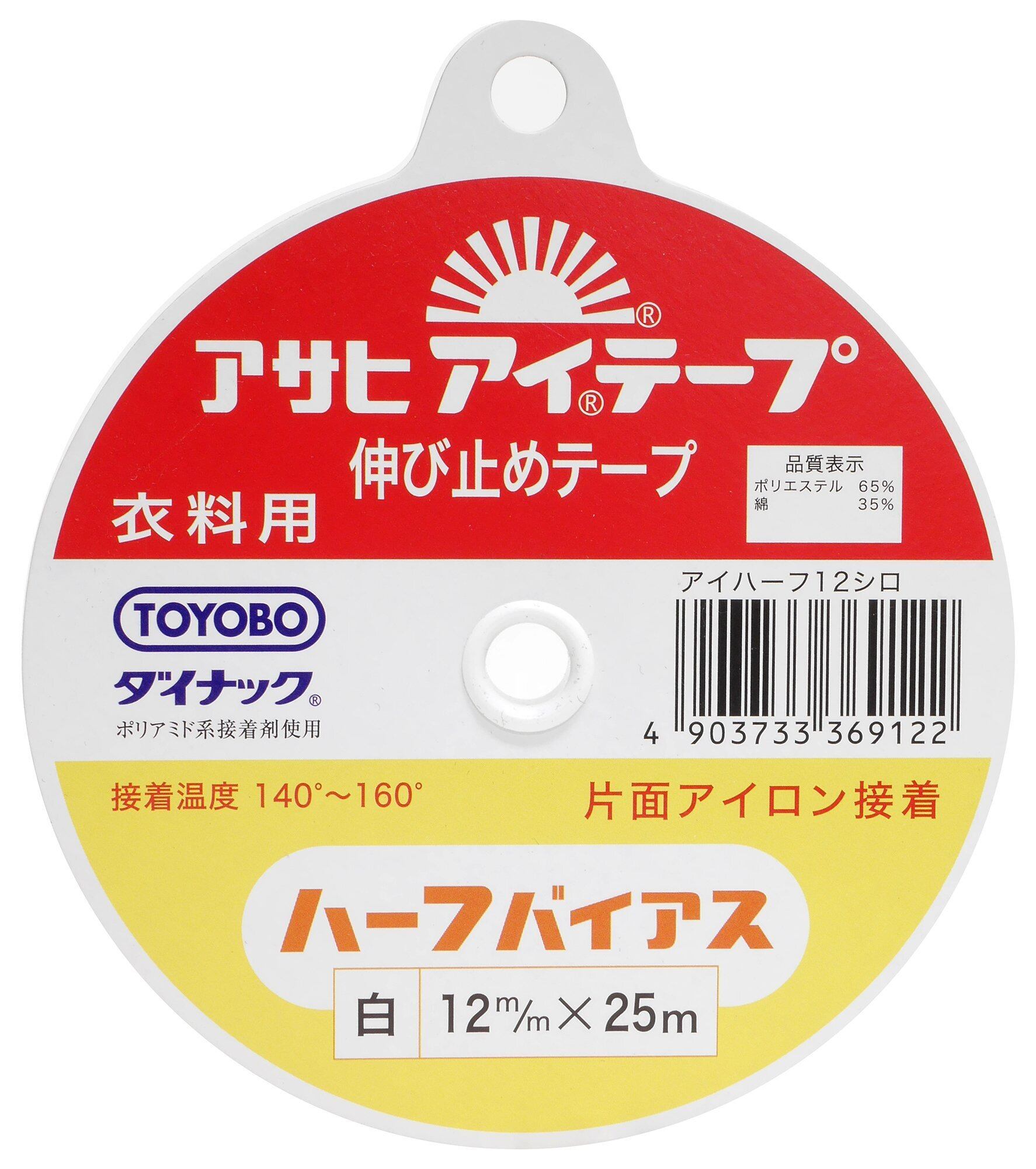 【新着商品】アサヒ アイテープ 伸び止めテープ 衣料用 片面アイロン接着 ハーフ 幅12mm×25m巻 白
