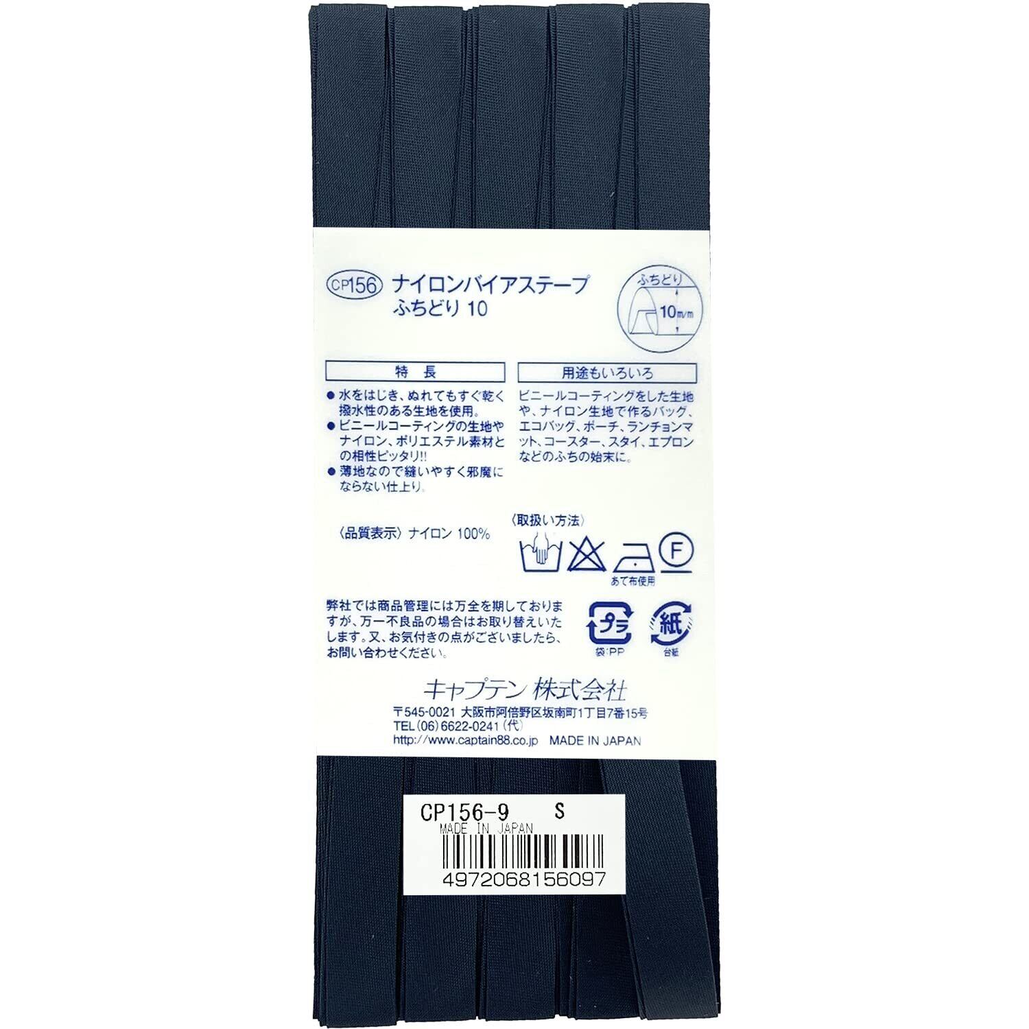 【新着商品】CAPTAIN88 キャプテン ナイロン バイアステープ 撥水 ふちどり 10mm幅×2.75m巻 #9 紺 CP156