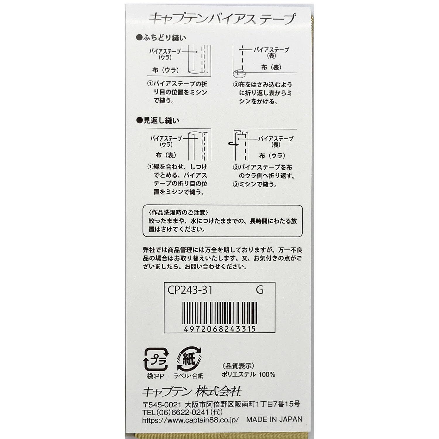 【2022最新】キャプテン(CAPTAIN) メタリック 両折 バイアステープ 25mm幅×1.8m巻 #31 ゴールド CP243