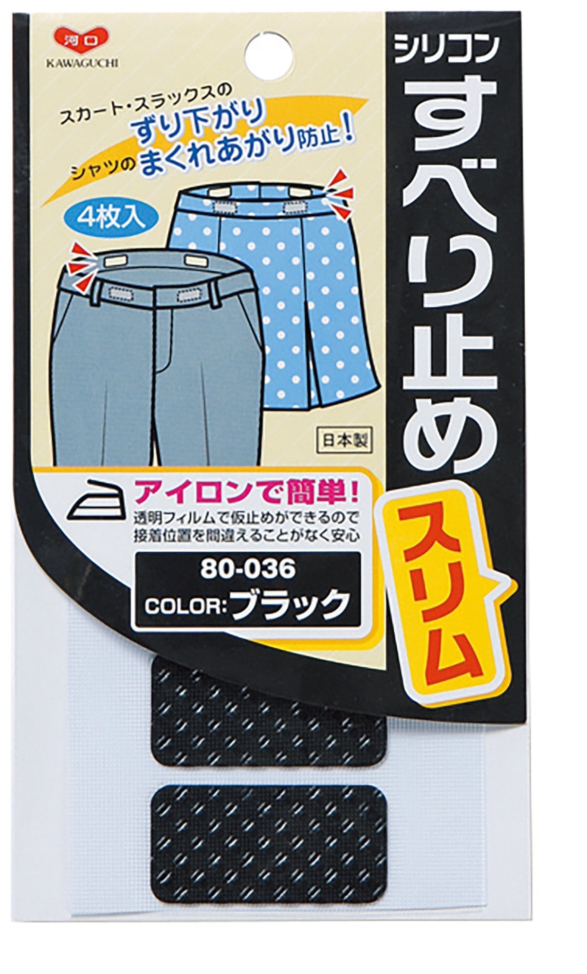 【新着商品】KAWAGUCHI すべりどめ スリム 熱接着タイプ 黒 4枚 80-036