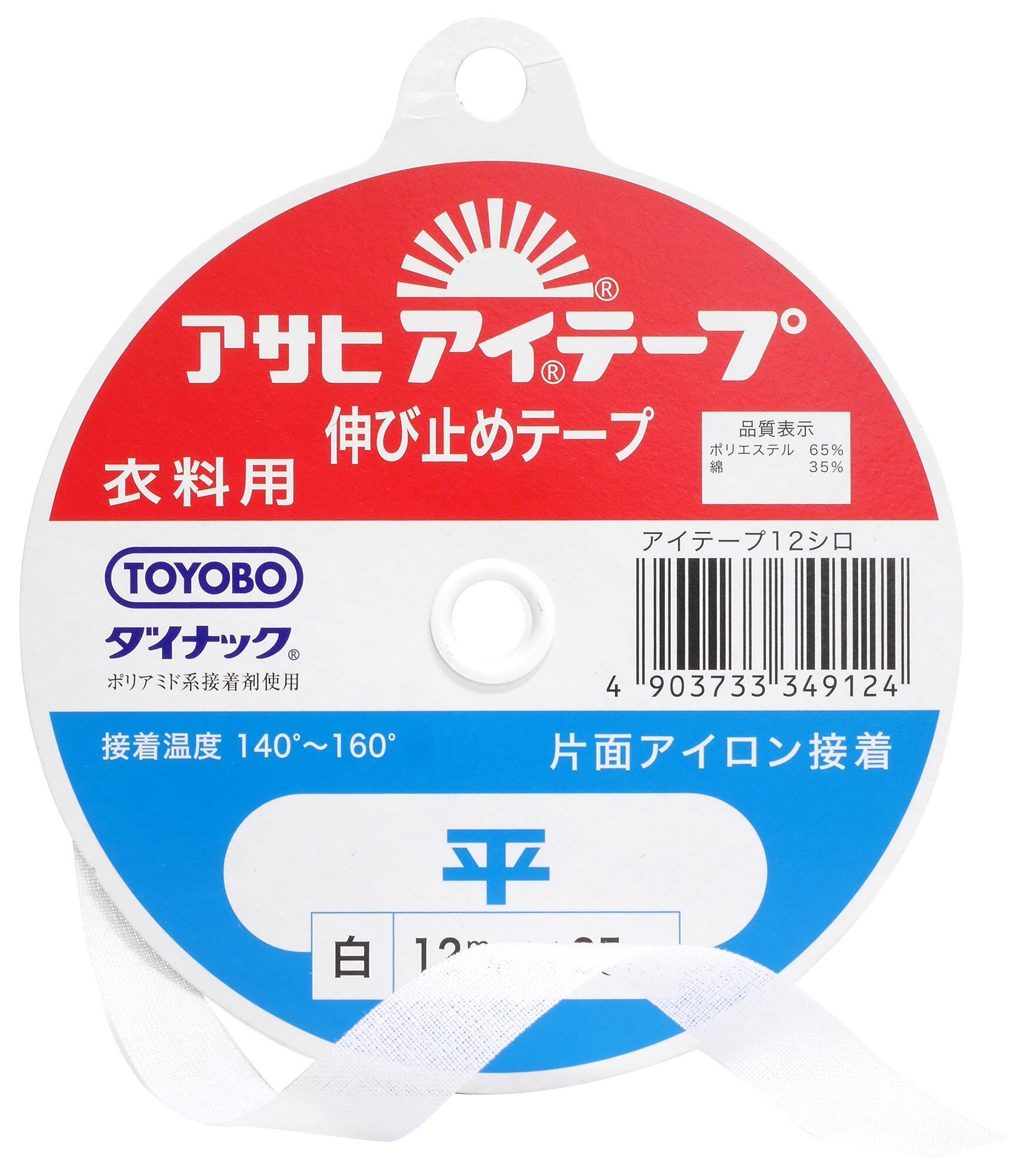 【2022最新】アサヒ アイテープ 伸び止めテープ 衣料用 片面アイロン接着 平 幅12mm×25m巻 白