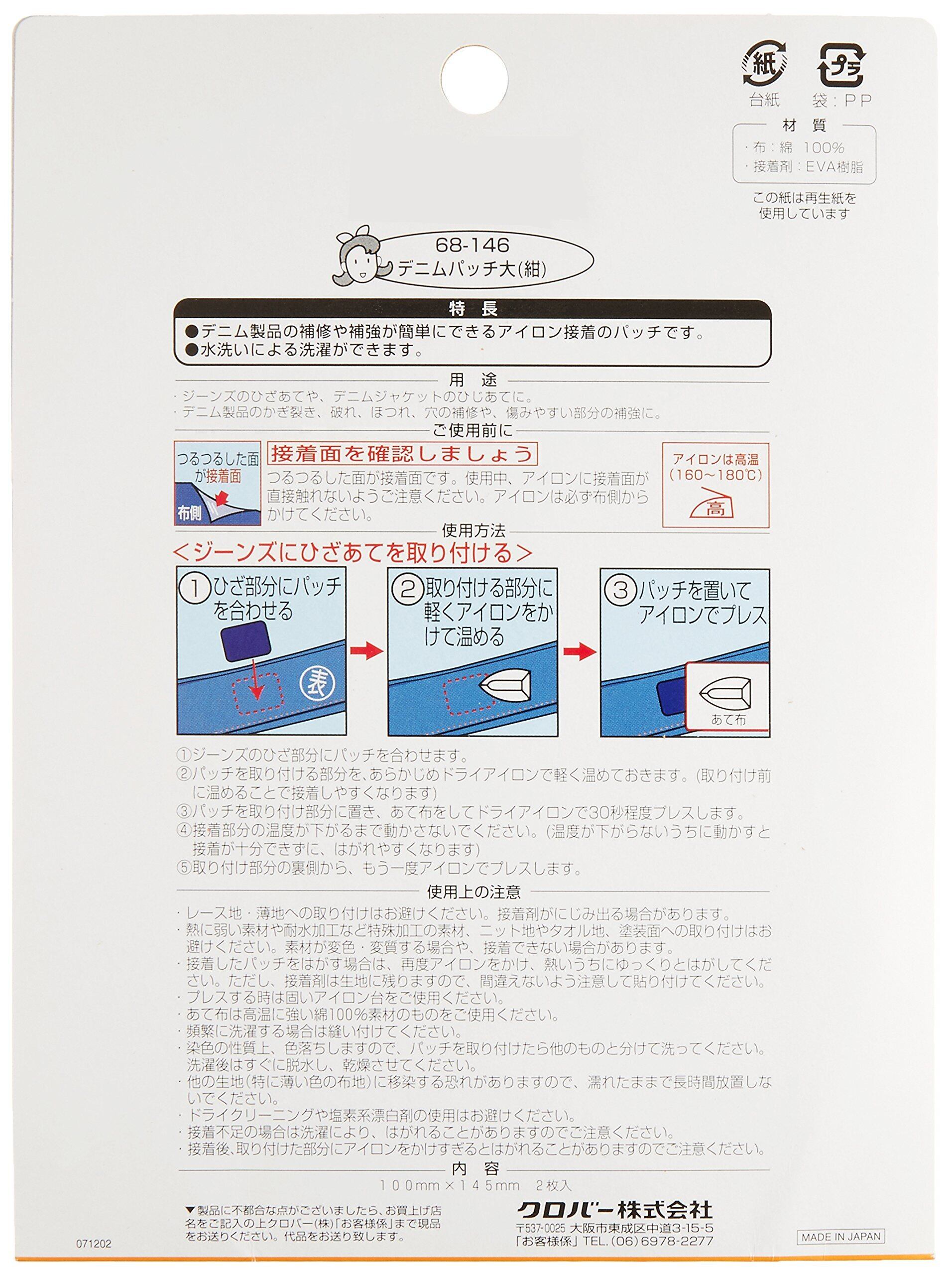 【新春セール】クロバー(Clover) Clover デニムパッチ 大 2枚入り 紺 68-146