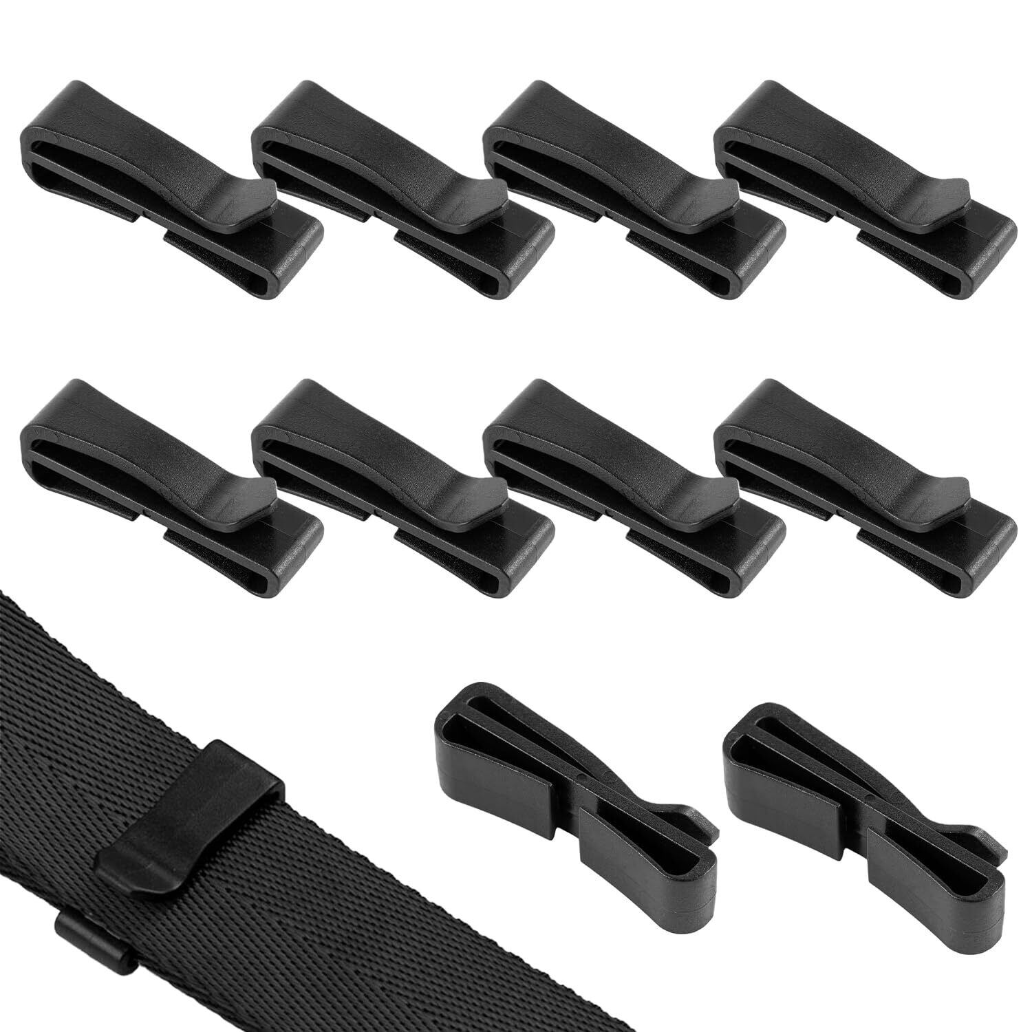 ベルトクリップ ベルトストッパー 10個セット 25mm/38mm ブラック 補助バックル ストラップ固定用 軽量設計 簡単調整 テープ用 リュックサック バッグ用 多用途 アウトドア 登山 キャンプ 旅行 収納 作業用 頑丈 耐久性