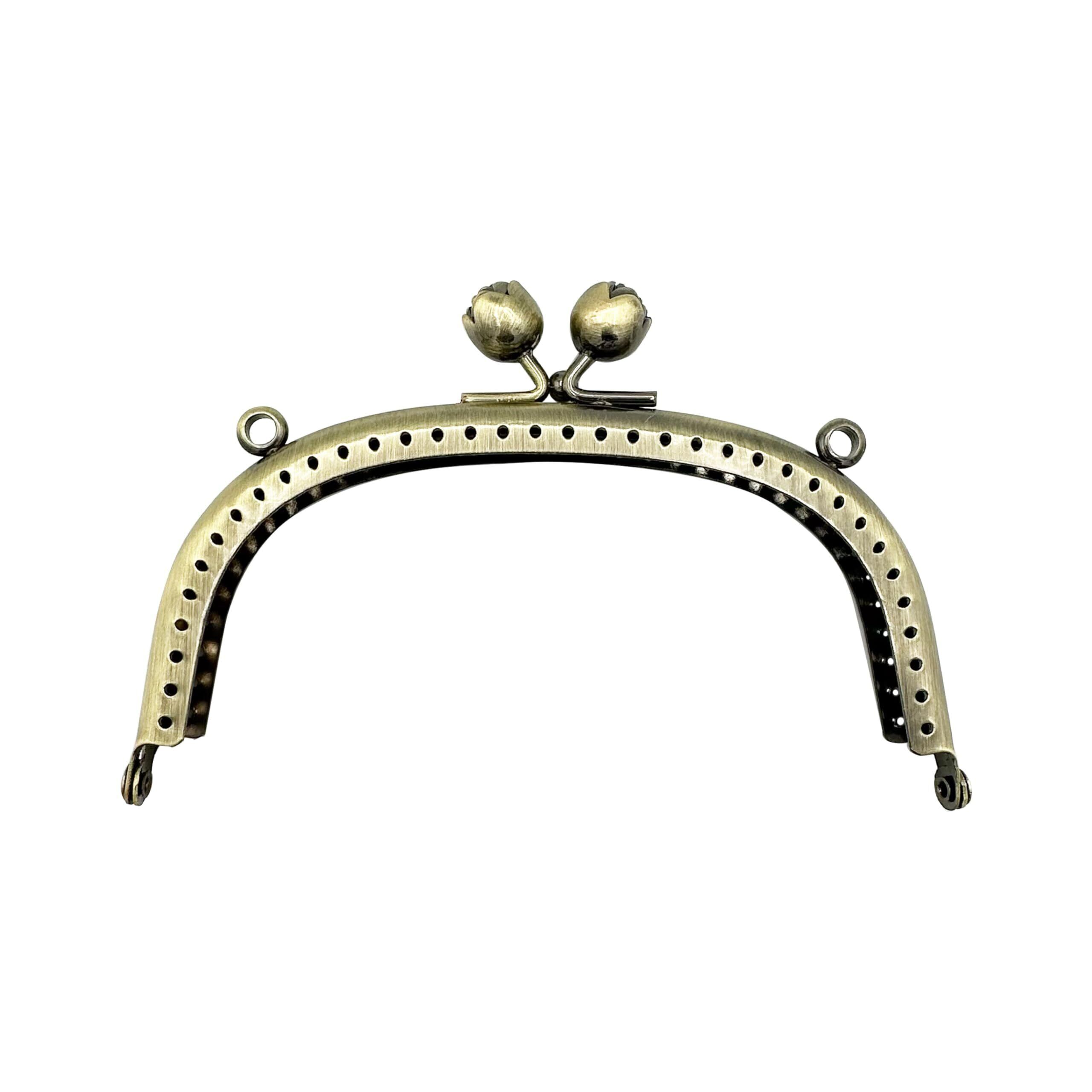 【在庫処分】がま口口金 バラ 12.5cm 型紙付 アンティークゴールド 縫い付けタイプ 10個