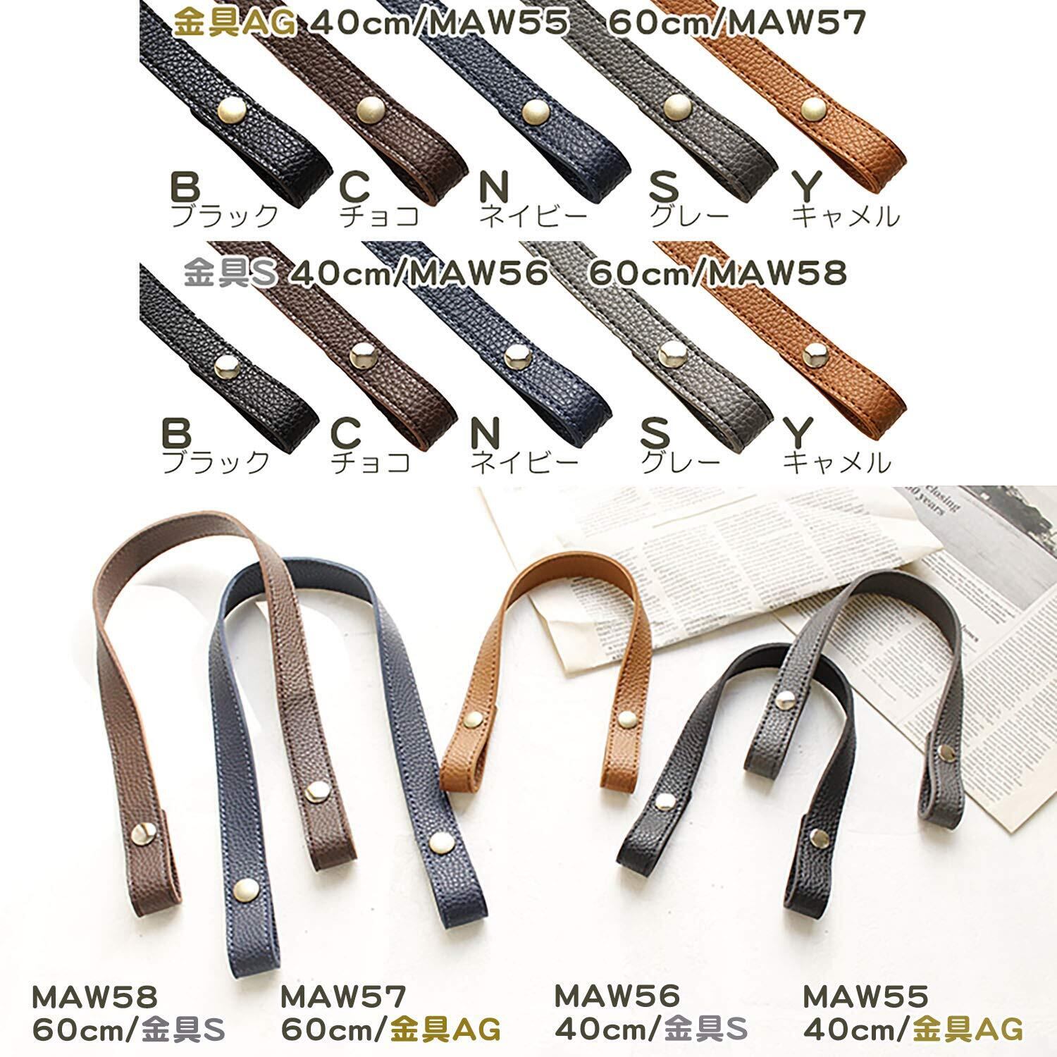 日本紐釦貿易(Nippon Chuko) エンボス加工 ホック式かんたん付け替えハンドル S/60cm 2本1組入 MAW58-N 手芸用品 バッグ材料 持ち手