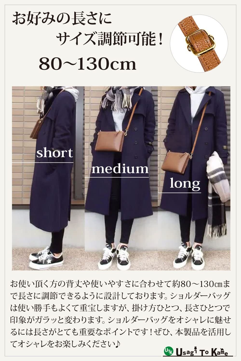 ・【自由な長さ調整】80㎝から130㎝まで調整可能なデザインは、斜め掛けや肩掛けなど、あなたの好みにぴったりフィットします。どんなスタイルにも柔軟に対応できるのが魅力です。