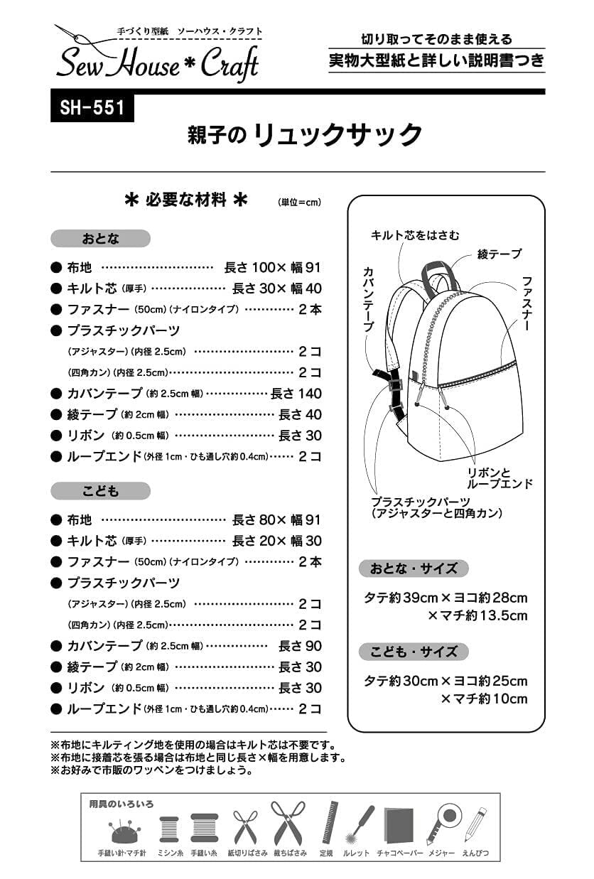【在庫処分】サン・プランニング 型紙 パターン 親子のリュックサック SH-551