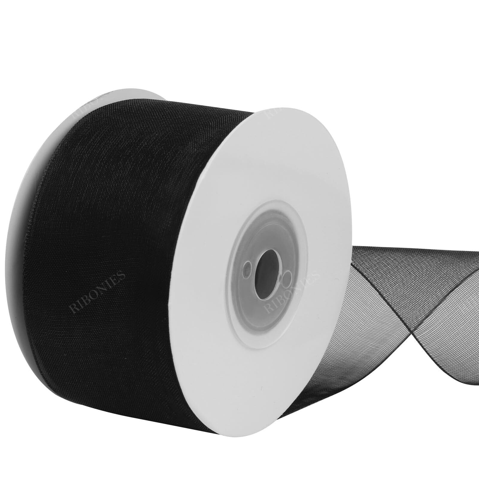 40mm×23m 黒 オーガンジーリボン|ギフト包装・ブーケ・誕生日パーティー・ウェディング装飾用テープ