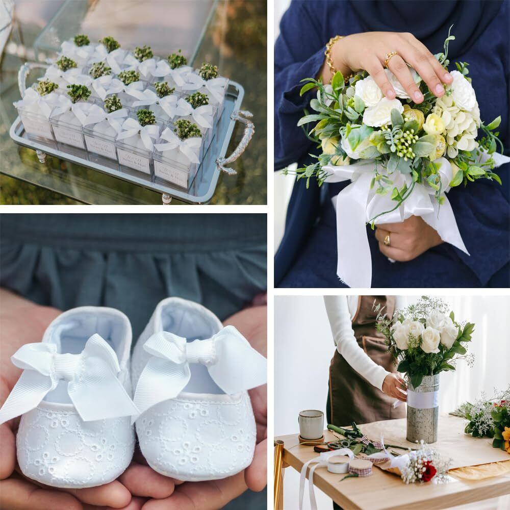 ・【エレガントなデザイン】ホワイトのサテンリボンは、さまざまなイベントやお祝いの場面で映えます!誕生日や結婚式の装飾、ギフトラッピングに最適で、特別な日に華を添えます。