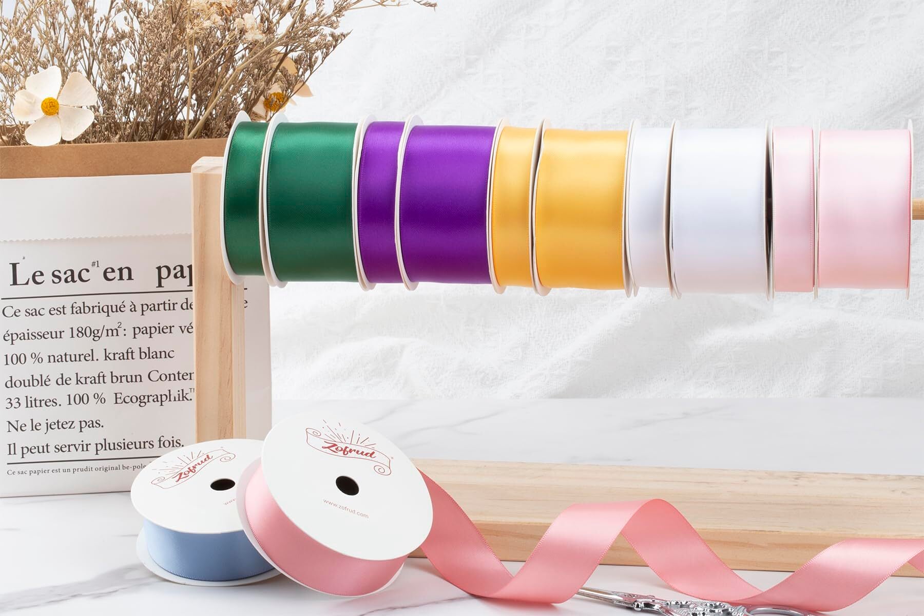 【Zofrud】のリボンは100%の高級糸で作られ、密度のある織りで構成されており、変形しにくく、簡単に折りたたむことができる品質を提供しています。クラフトやデコレーションのプロジェクトに最適です。
