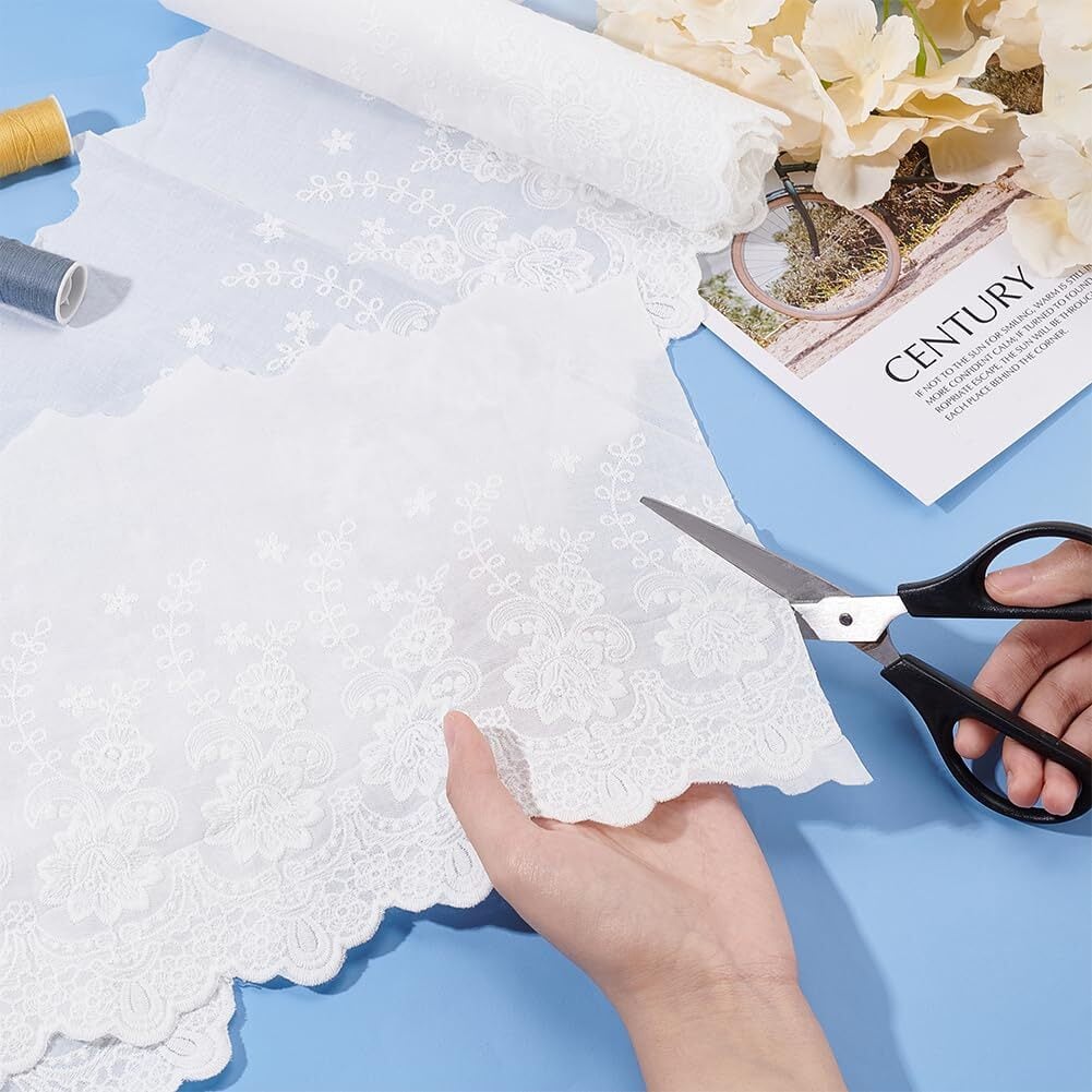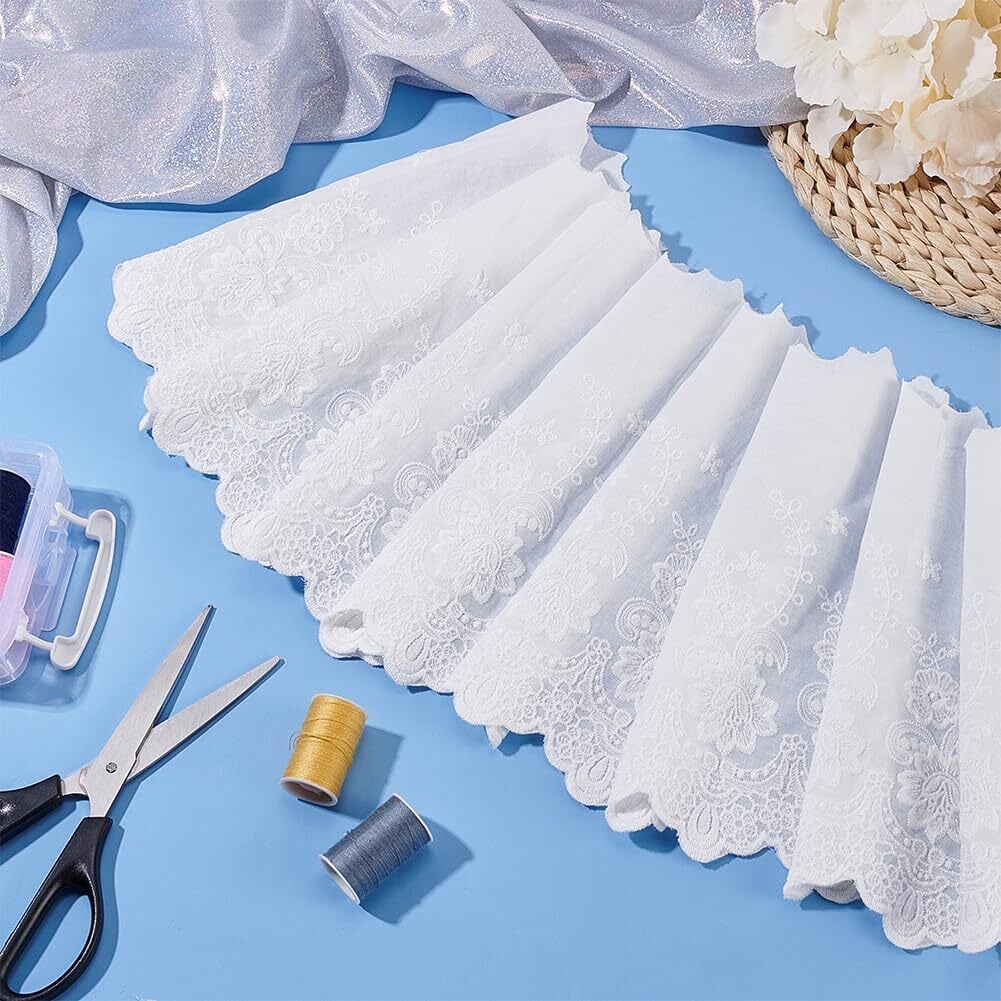 BENECREAT 約2.7m コットンリボン 白い 波状エッジ 花刺繍 レーストリム 幅約220mm フラットレースリボン クラフト縫製 ドレス 装飾用
