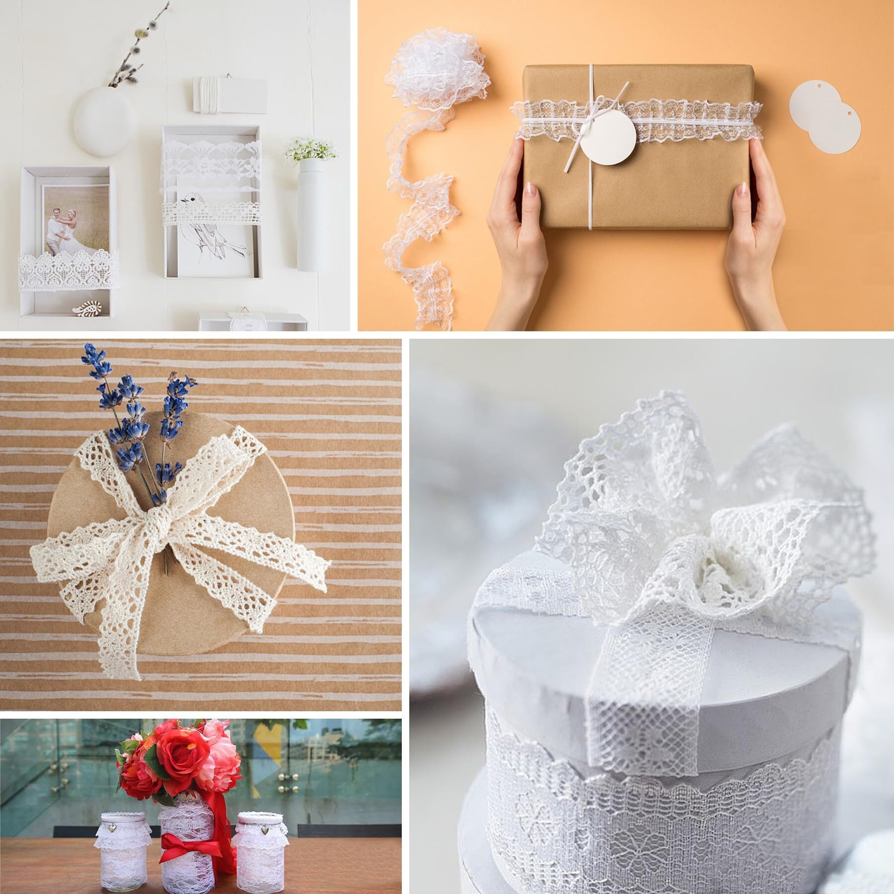 BOROLA 4.5cm幅 カラフルレースリボン 手芸レース 縫製素材 9m/巻 (ホワイト)