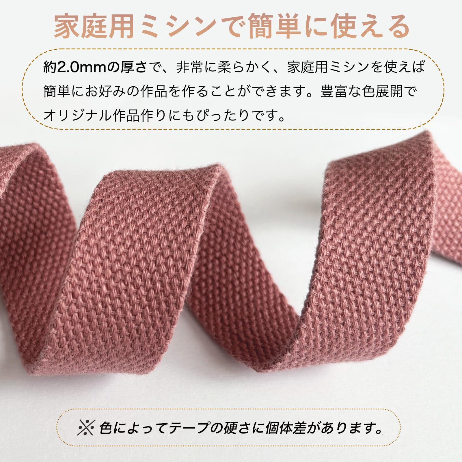 【幅サイズ】約25mmで、主にハンドメイドバッグに使用するベーシックなサイズです。お好みに合わせてハンドメイドアクセサリー作品にジャストフィットします。【ご注意】本製品はポリエステルの細い繊維の集合体でできており、生産ロットによりテンションの強弱があり幅が1-2mm前後する場合があります。ご了承の上ご注文ください。