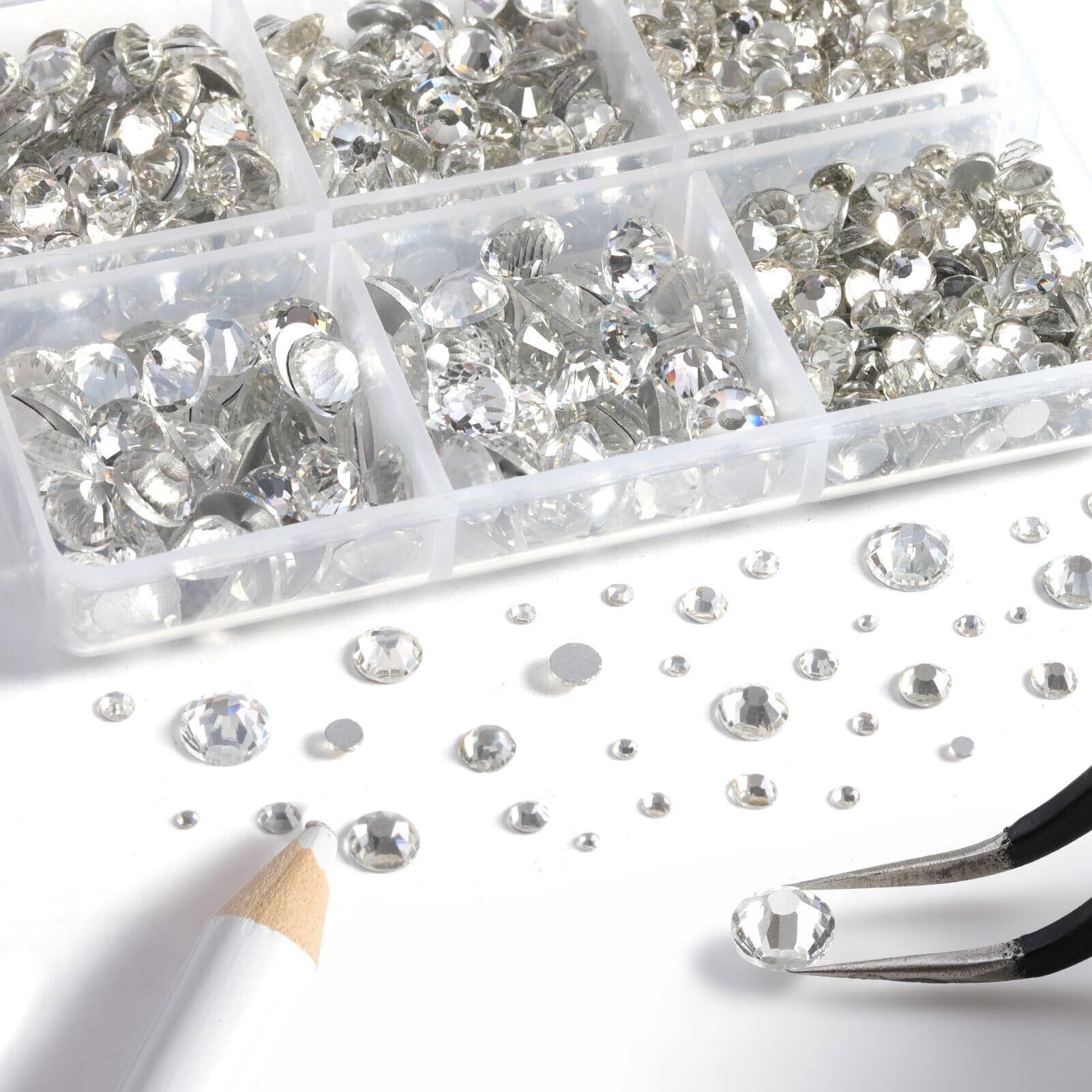 【新春セール】Beadsland(ビーズランド)8,300個 フラットバック ラインストーン ホワイトのラインストーン ラウンド クリスタルラインストーン 手工芸用 10サイズ混合 ワックスペンシルとピンセットキット付き、SS3-SS30、クリスタル | wakuwakuland