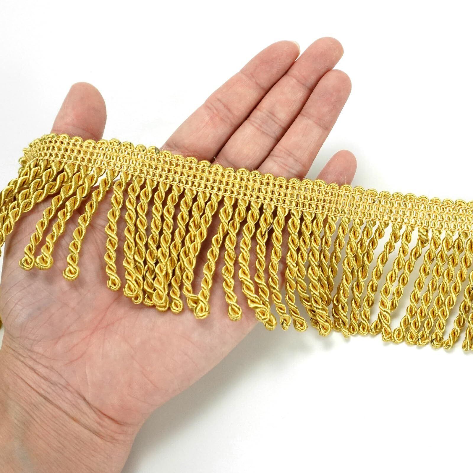 ・【豪華な金色】: キラキラと輝く金色のフリンジテープは、シックで高級感を演出します。カーテンやファブリックのアクセントとして使用することで、おしゃれな空間を作り出します!