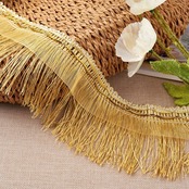 ・【華やかなゴールド】: 洗練されたゴールドのフリンジレースが、シンプルながらもラグジュアリーな雰囲気を演出。衣類やカーテンなど、さまざまなアイテムに使うことで、エレガントなアクセントを加えます!