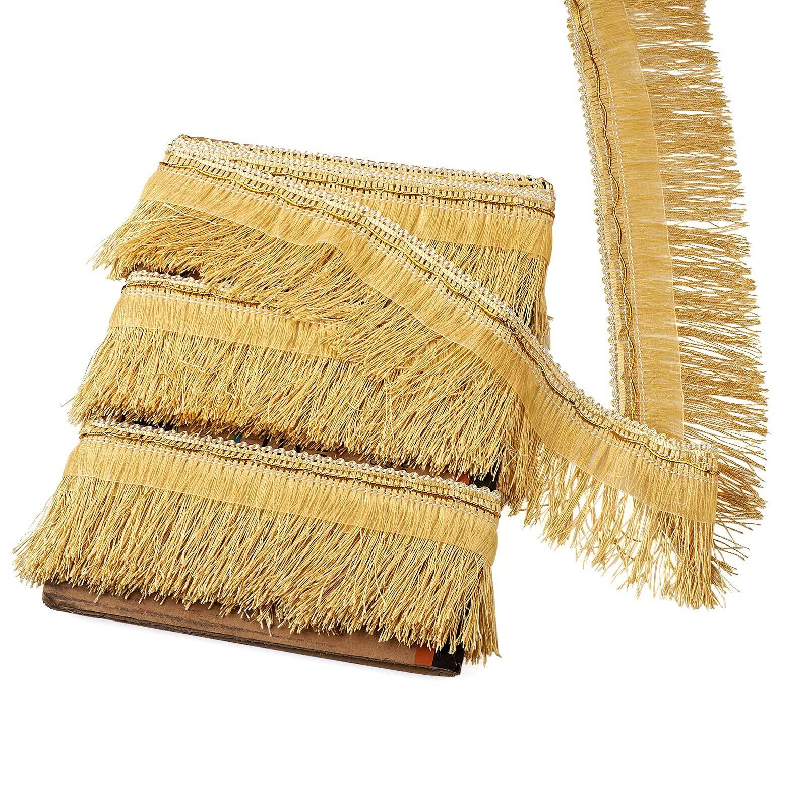 約12m 幅10cm ゴールド フリンジレース フリンジトリム ポリエステルリ製 フリンジ テープ タッセル トリムリボン 手芸用 服装 縫製工芸 DIY 手作り ハンドメイド アクセサリー 衣類 カーテン用 縁飾り 装飾