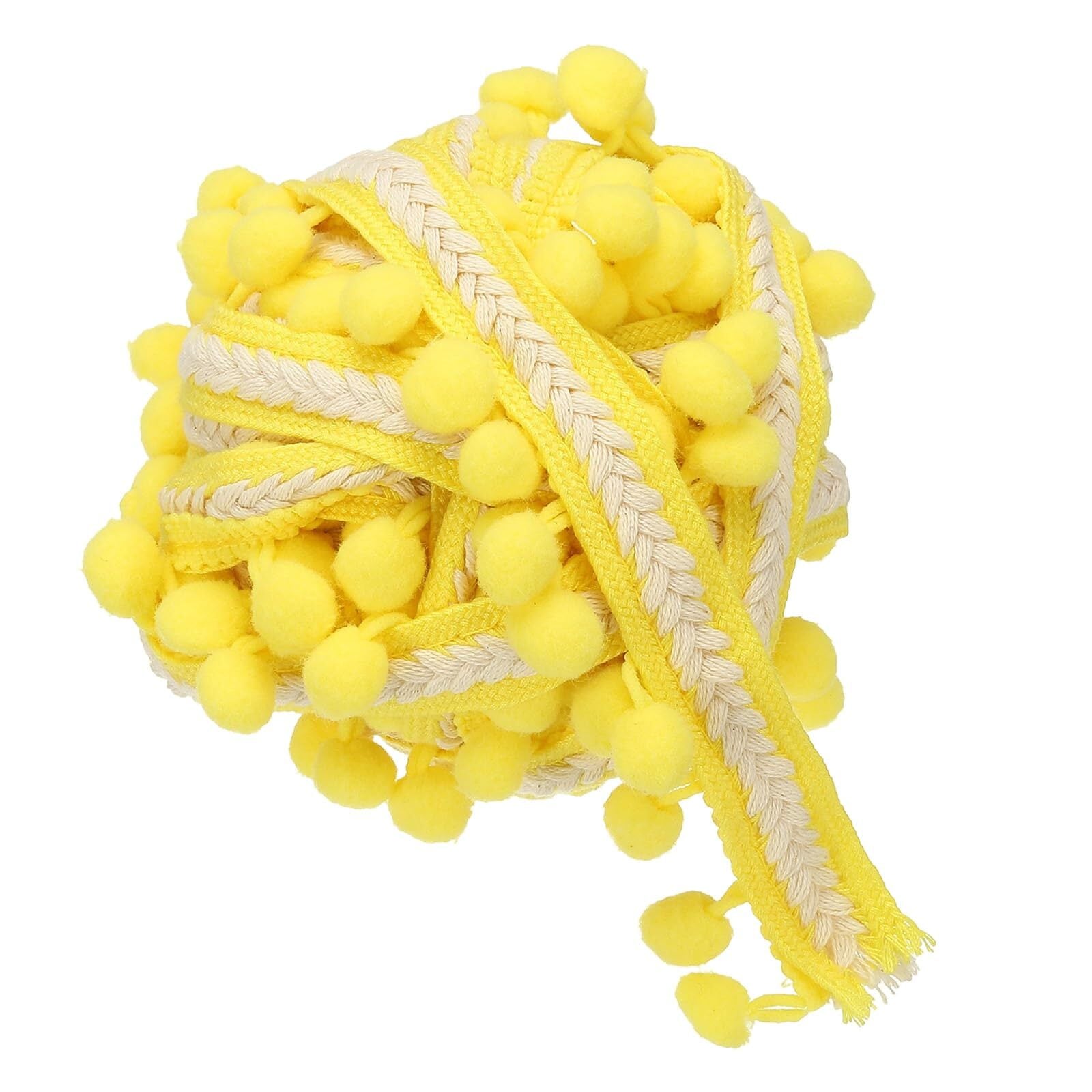 PATIKIL 5.5ヤード 刺繍ポンポン トリム リボン ポンポン フリンジ ボール トリム リボン タッセル レース アクセサリー 裁縫 DIY クラフト 布 ホーム カーテン デコレーション イエロー