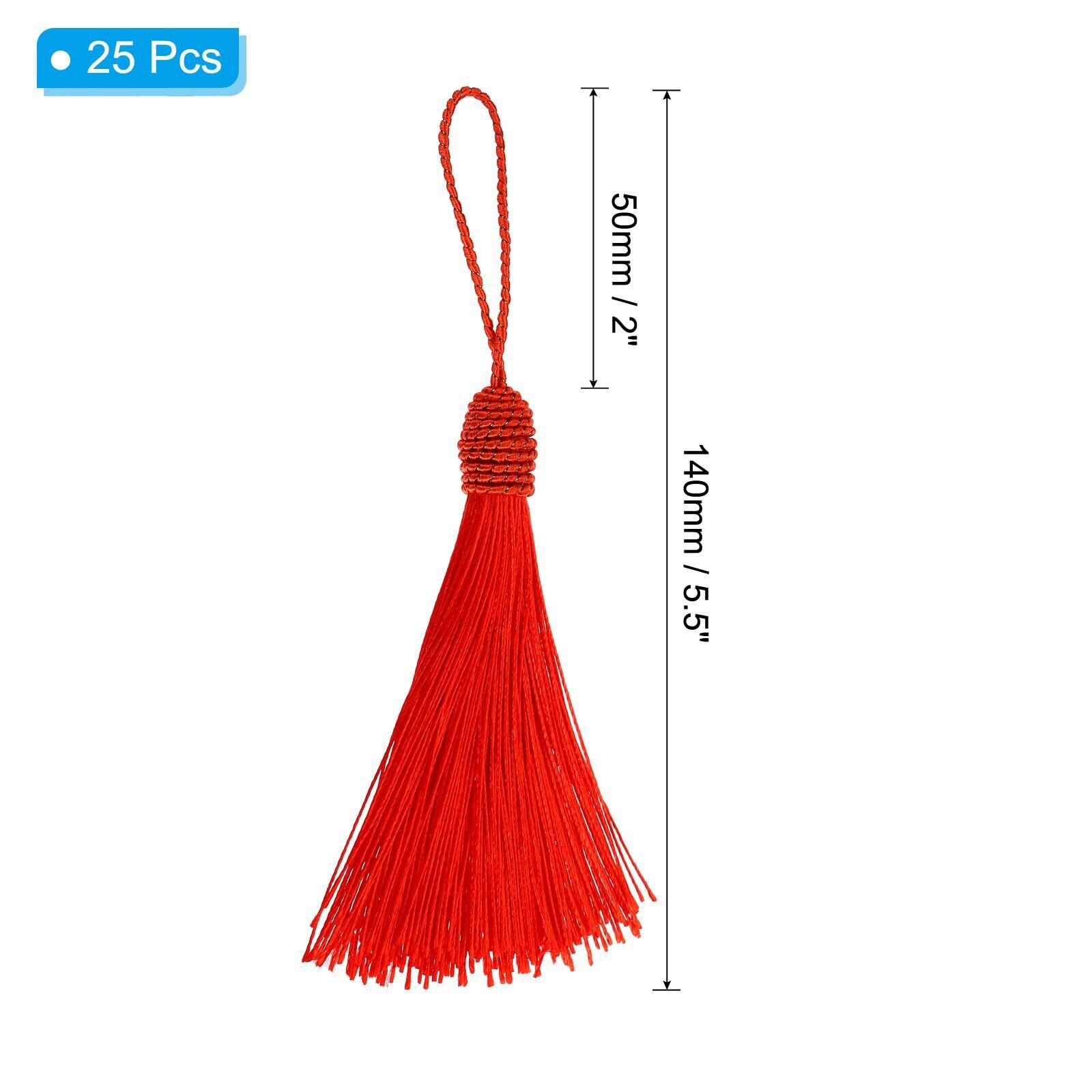 PATIKIL フリンジ長さ14cm しおりフリンジ 25個入り 柔らかなシルク パイルリング ミニ 手作り フリンジ クラフト キーホルダー ジュエリー作り 手作り DIY レッド
