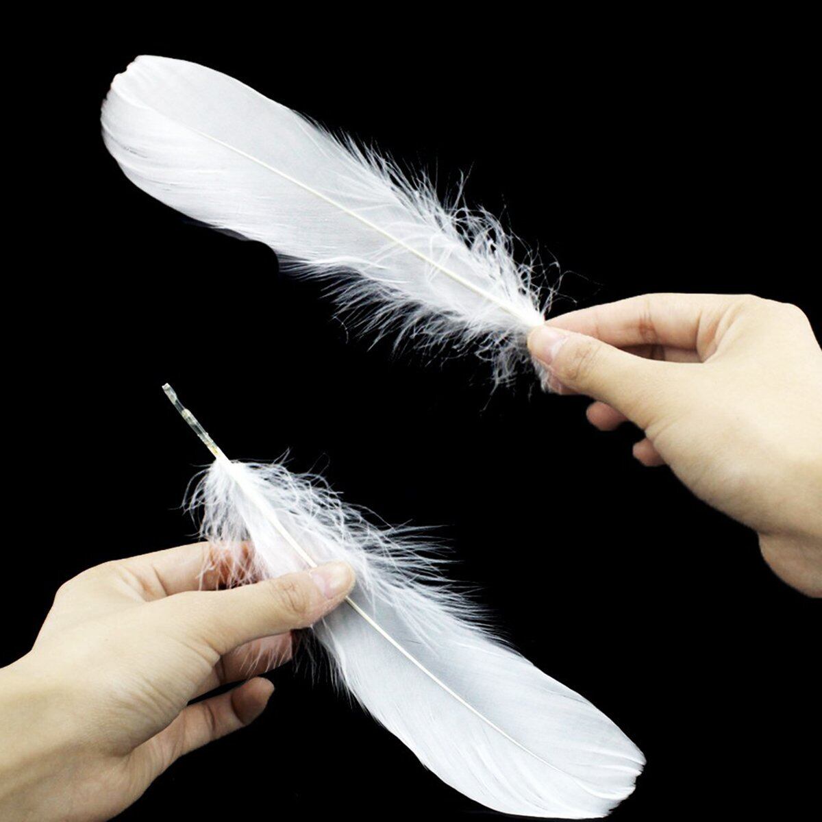 ・【高品質なホワイトの羽】: ガチョウの羽根を使用しており、自然な美しさと優雅さを漂わせます。サイズは10-17cmとなっており、あらゆる作品に活用できます。