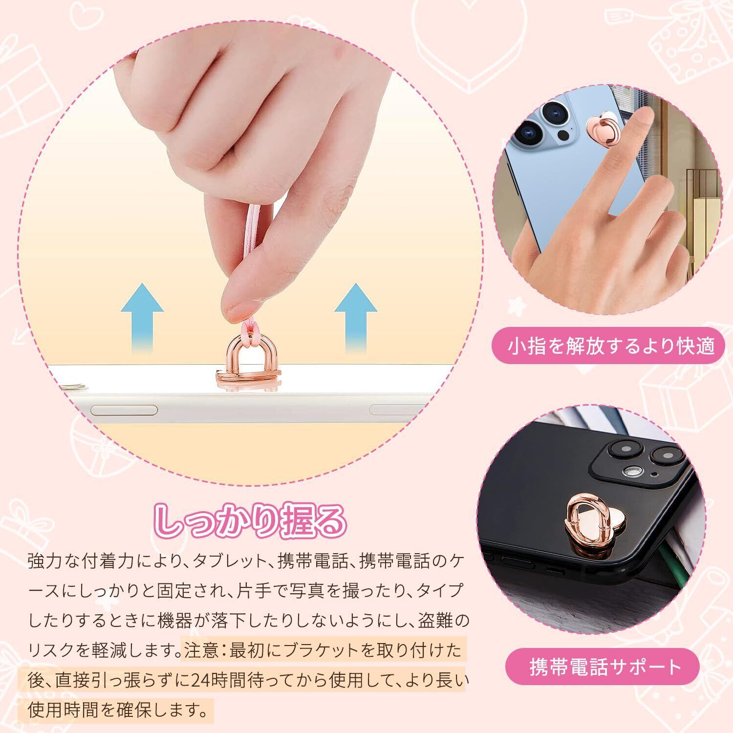 キーリングハンガー スマホ スマホストラップ リング 2個入り ハート型/リボン型 シルバー/ローズゴールド 貼り付け式 DIYアクセサリーパーツ メタルフック付属 スマホケース装飾用