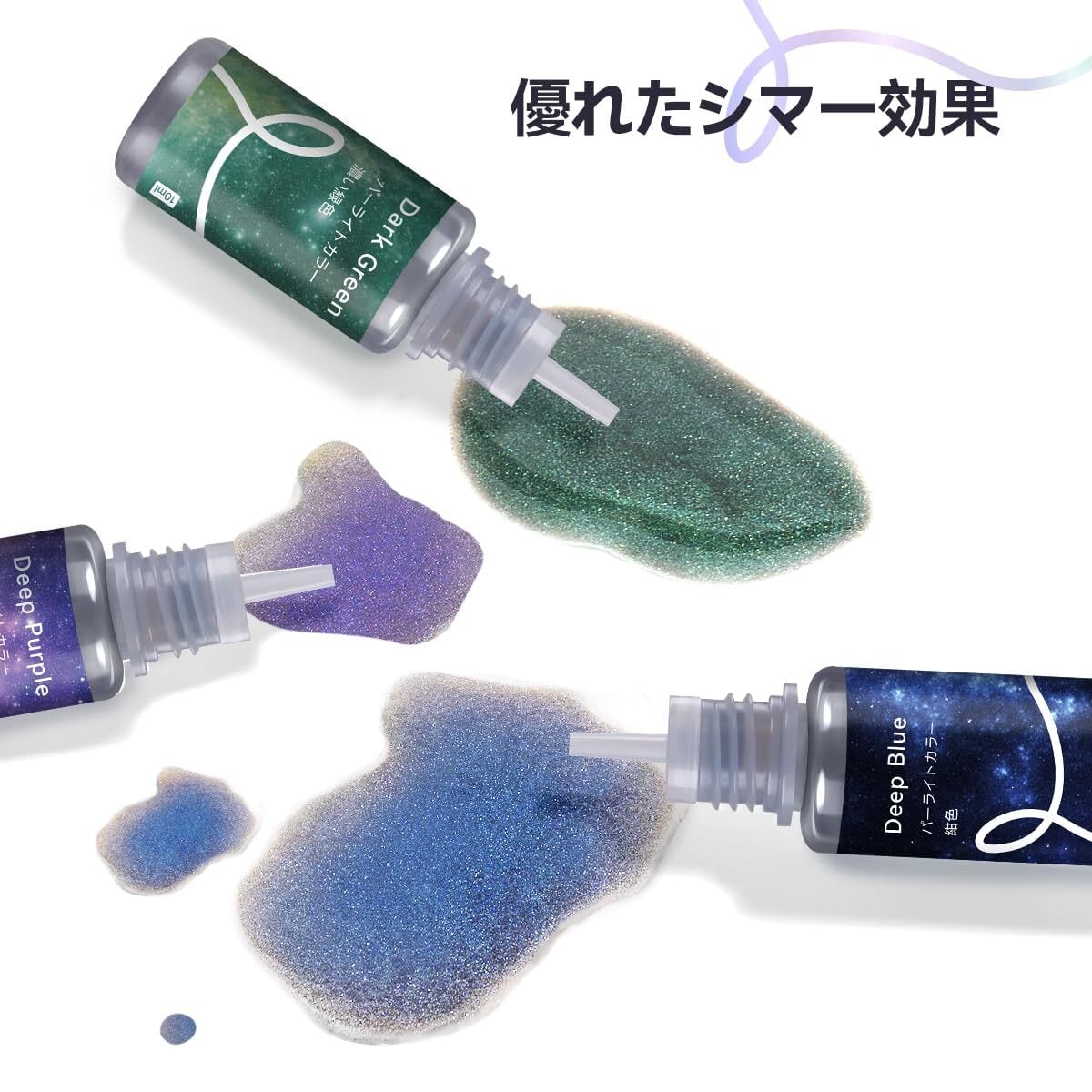 ・【高濃度な顔料】: 一滴でしっかりとした色合いを表現できる高濃度タイプ!少量で効果的に着色でき、長持ちする美しい仕上がりを実現します。