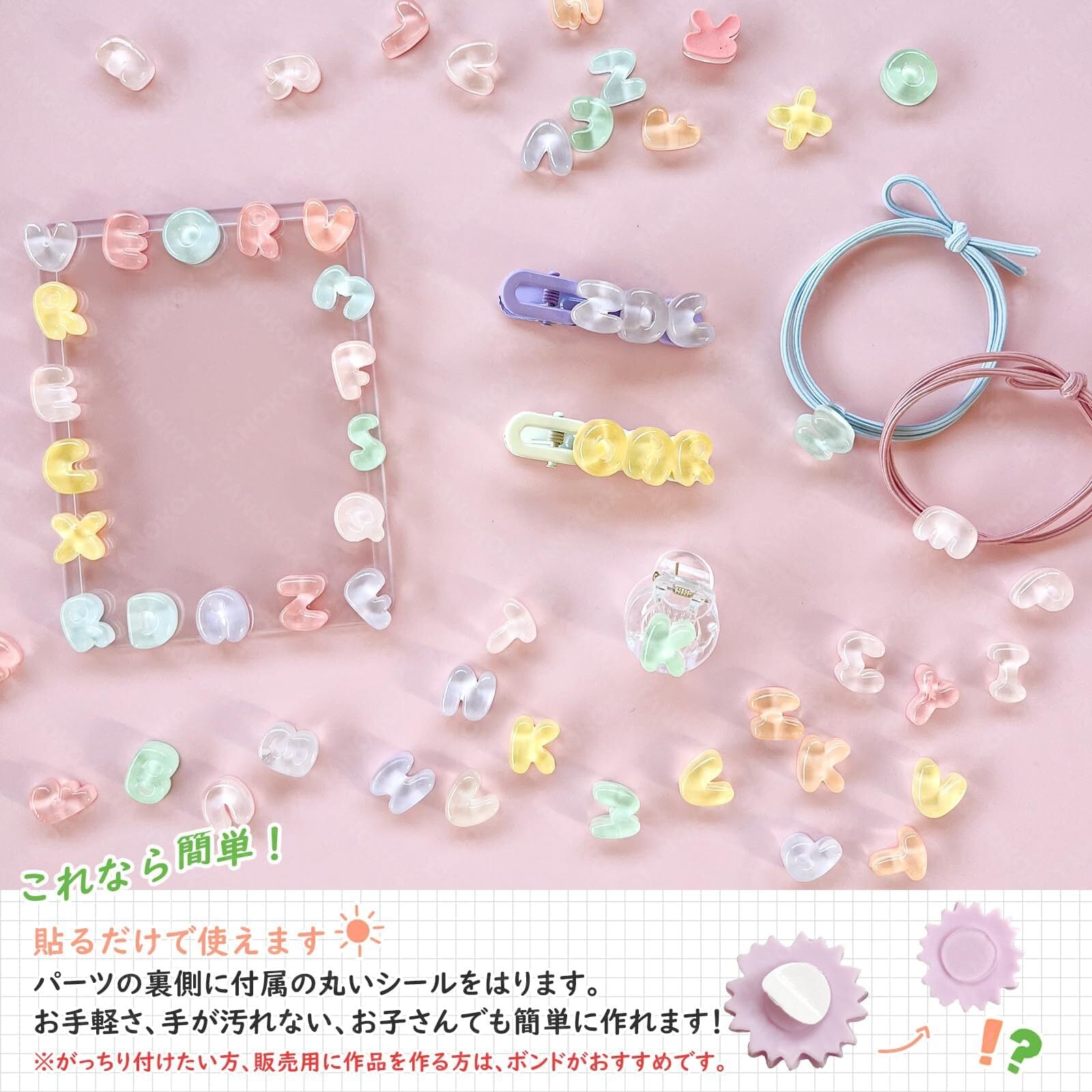 ・【かわいいスイーツデザイン】: 半透明でカラフルなデコパーツが揃い、ホイップデコやスイーツモチーフに最適!キャラクターや動物の形をしたパーツは、あなたの作品にキュートさを加えます。