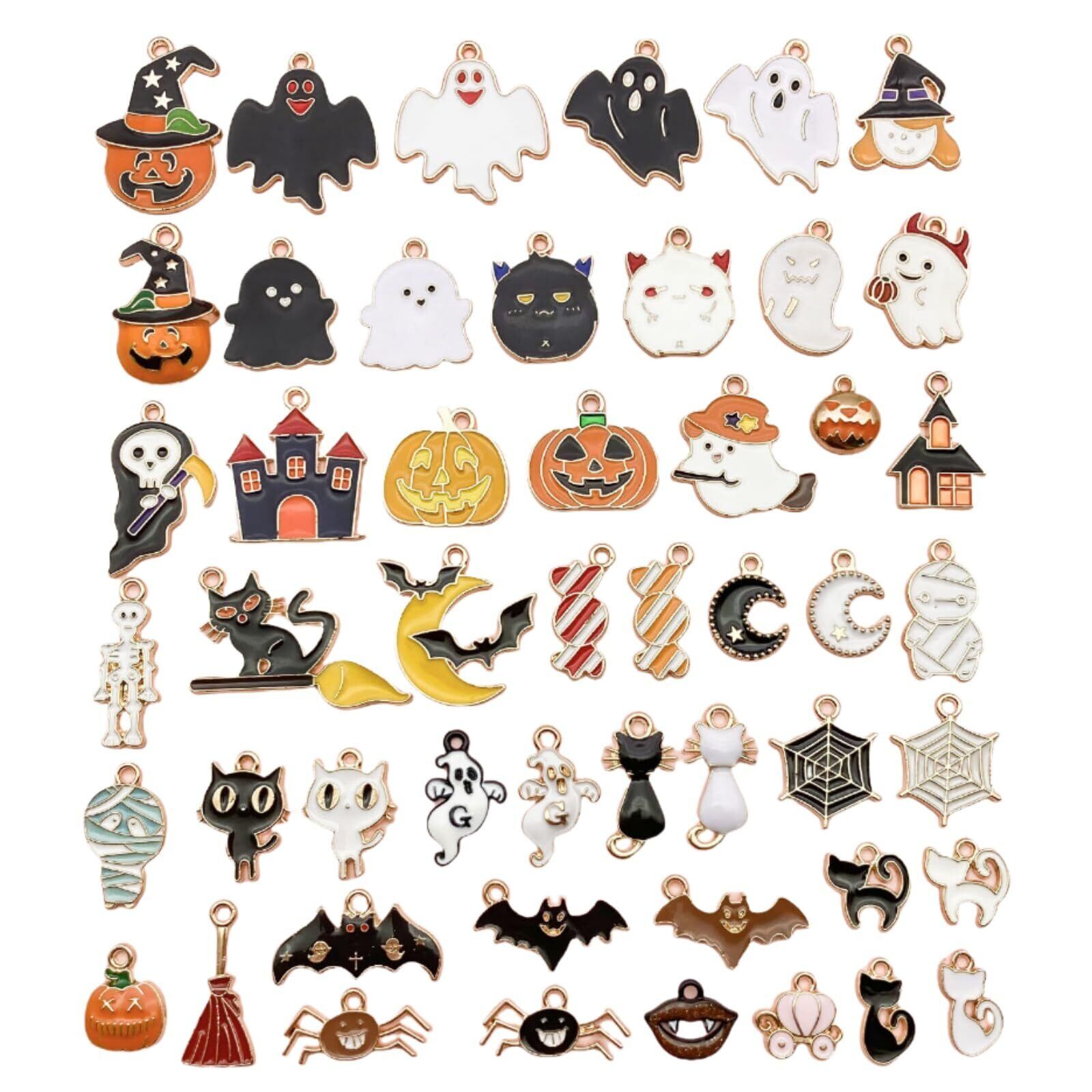 【数量限定】[Kingsiely] チャーム パーツ ハロウィン 50個セット コウモリ おばけ カボチャ 蜘蛛 蜘蛛の巣 猫 チャーム アクセサリーパーツ ハロウィン デコパーツ 3D 立体 合金 オーナメント ネックレス イヤリング ペンダント ジュエリー DIY ハンドメイド デコパーツ 手芸材料 工芸品 | wakuwakuland