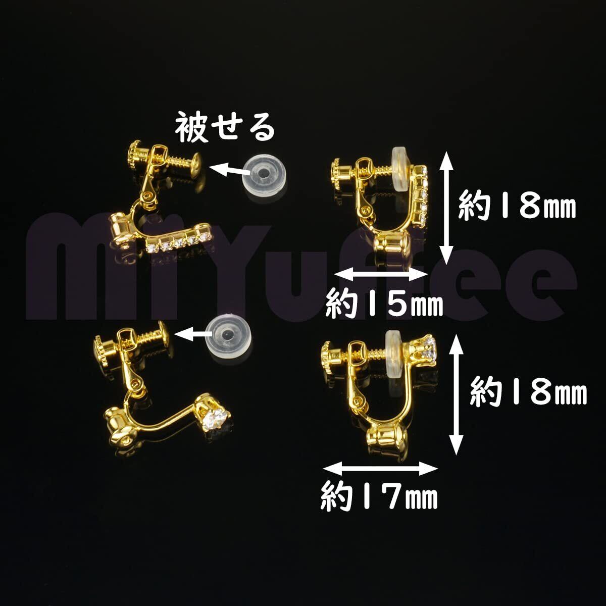 素材:真鍮(メッキ)・樹脂 カラー:ゴールド・シルバー ジルコン色:クリア 数量:4ペア サイズ:画像にご参考ください