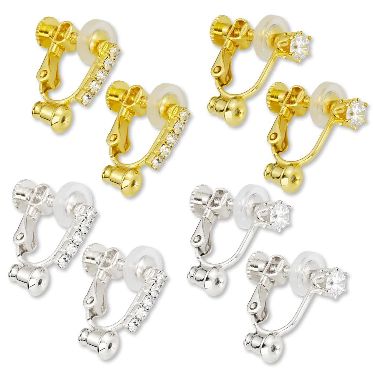 【新着商品】イヤリングコンバーター ネジ式 横型 ラインストーン付き ゴールド シルバー 2種4ペア