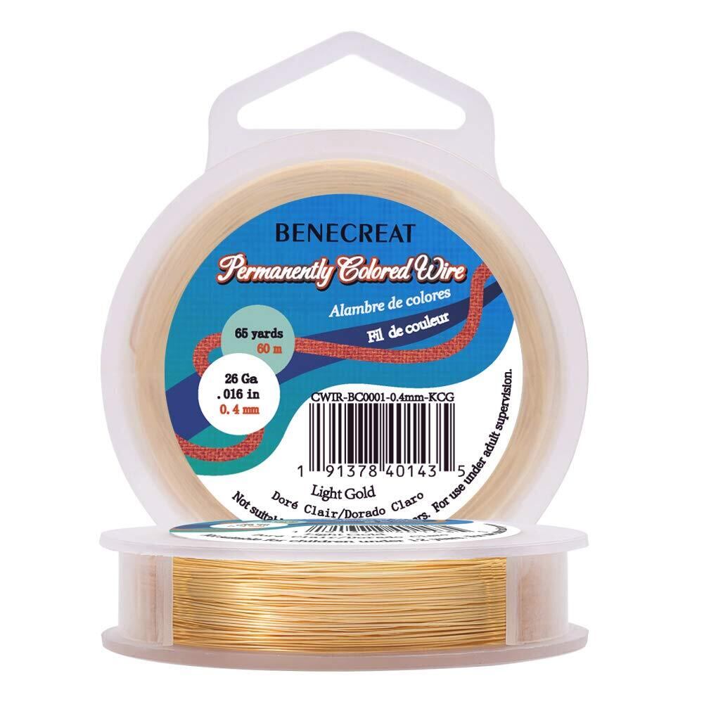 BENECREAT 全長60m線径0.4㎜アクセサリーワイヤー アートワイヤー 光沢感 変色防止カッパーワイヤー クラフト銅線 ジュエリー作り 手芸素材 手作り(ゴールド)