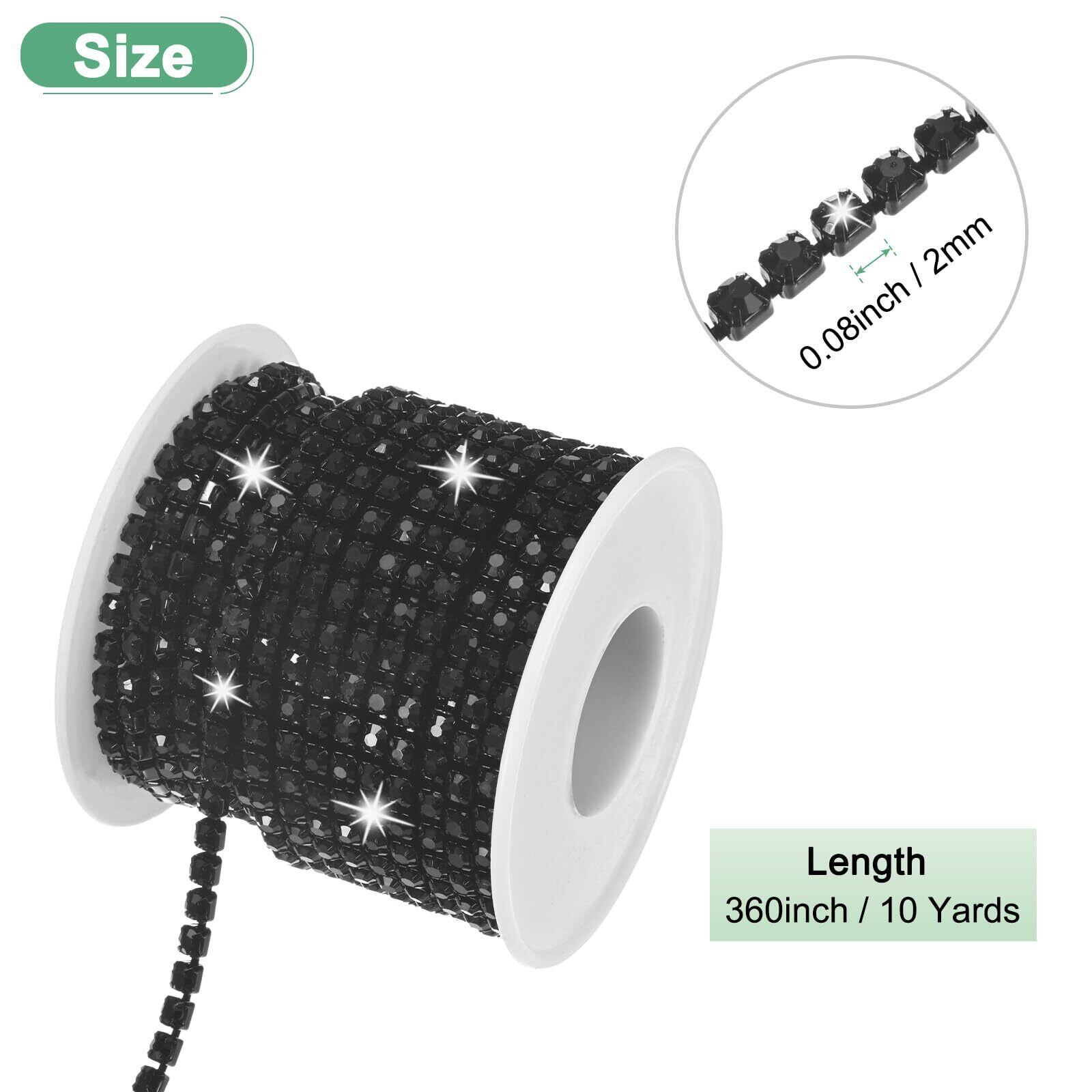 M METERXITY 水晶ラインストーンクローズチェーン 2mm 10ヤードシングルロートリミングクローチェーン DIY装飾/宝石クラフト用水晶クローカップチェーンロール[黒]