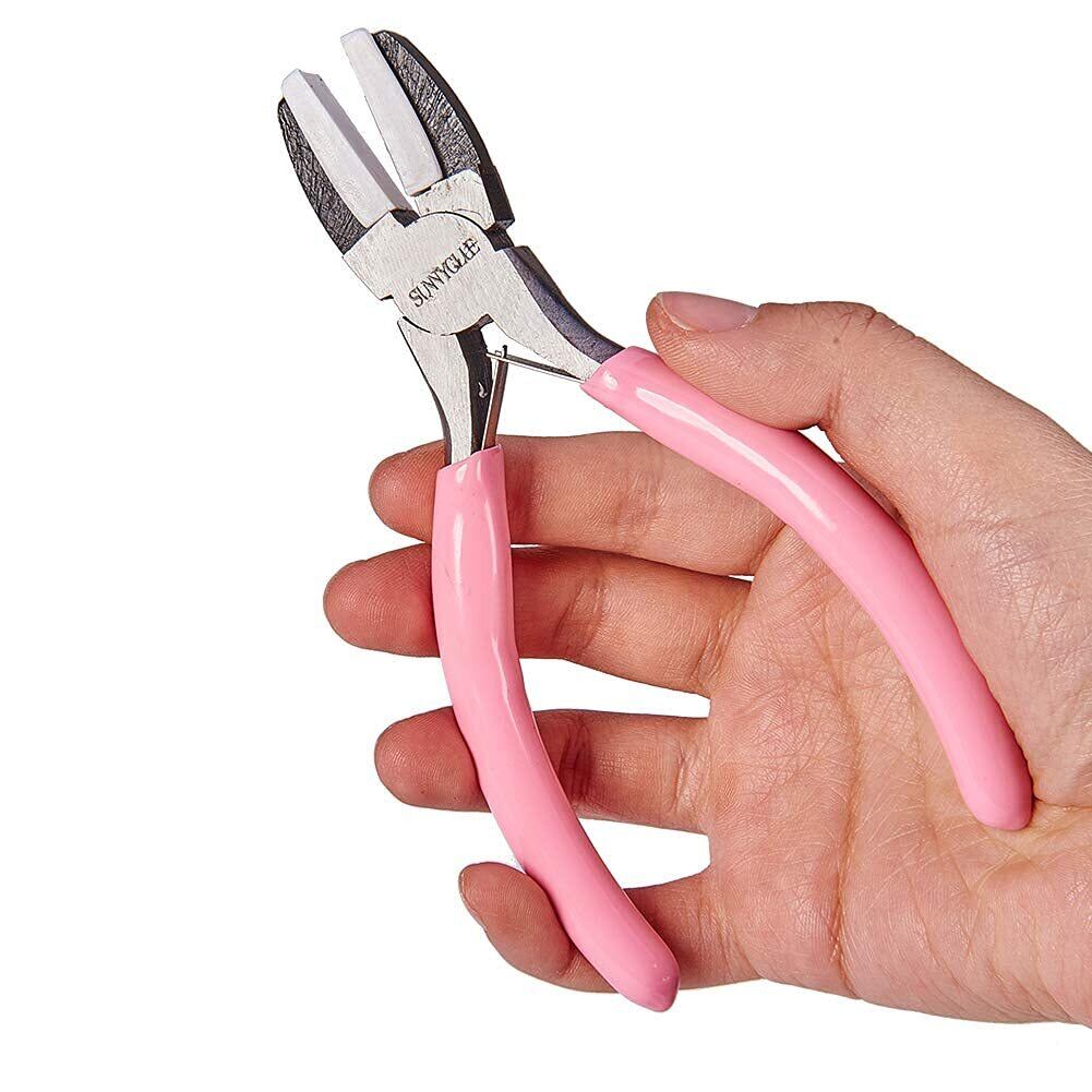 SUNNYCLUE 5.5インチダブルナイロンジョーフラットノーズプライヤーミニ精密プライヤーワイヤー形成曲げ工具DIYジュエリー作りホビープロジェクトピンク, リーフスプリング構造
