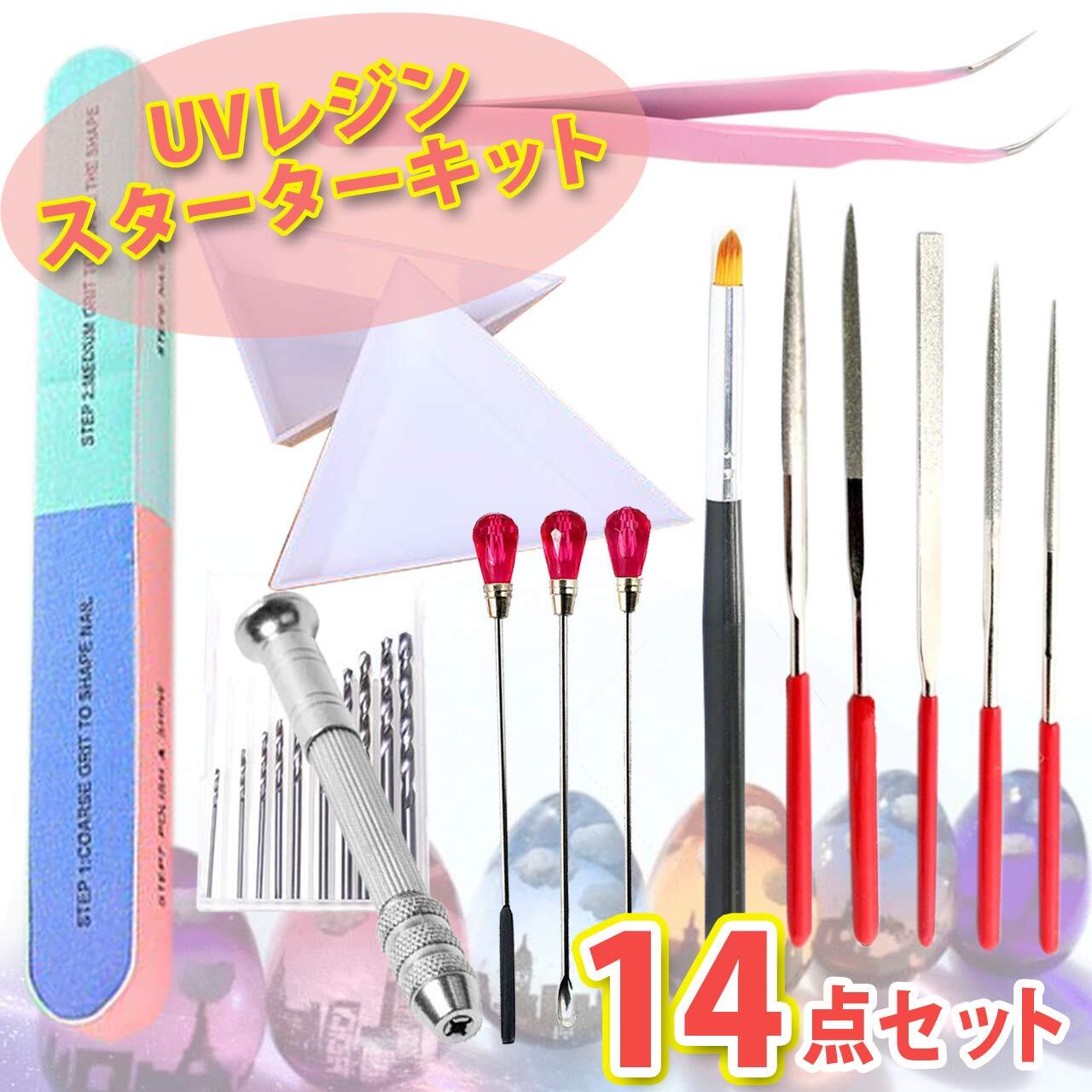 フェリモア UVレジン 基本道具セット スターターキット ドリル ピンセット やすり 刷毛 攪拌器 (14点セット)