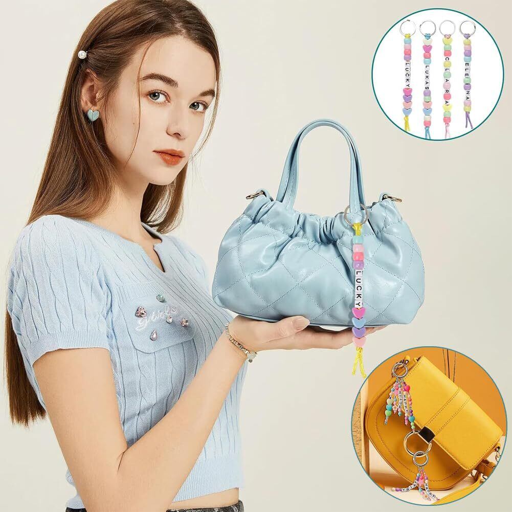 パッケージ内容:このビーズキーチェーン製造キットには、金属製キーリング12個、ロープ4本、アルファベットビーズ300個、カラービーズ200個、ハート形ビーズ50個が含まれています。