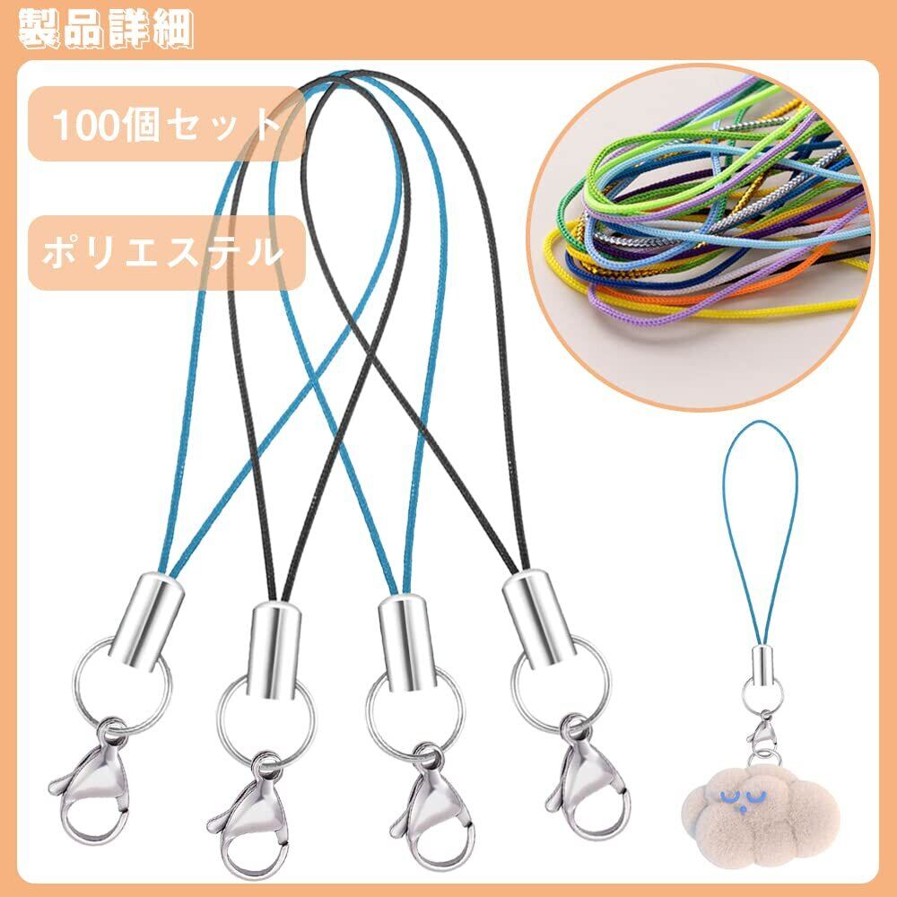 【2022最新】[XIAOBUDING] ストラップ フック付き 100本セット 携帯ストラップ アクセサリー ラップアクセサリパーツ ポリエステル糸装飾用紐 DIY金具 ハンドメイド 手芸 自作 パーツ 落下防止 紛失防止 USBメモリ/スマホ/キーホルダー に適しています | wakuwakuland