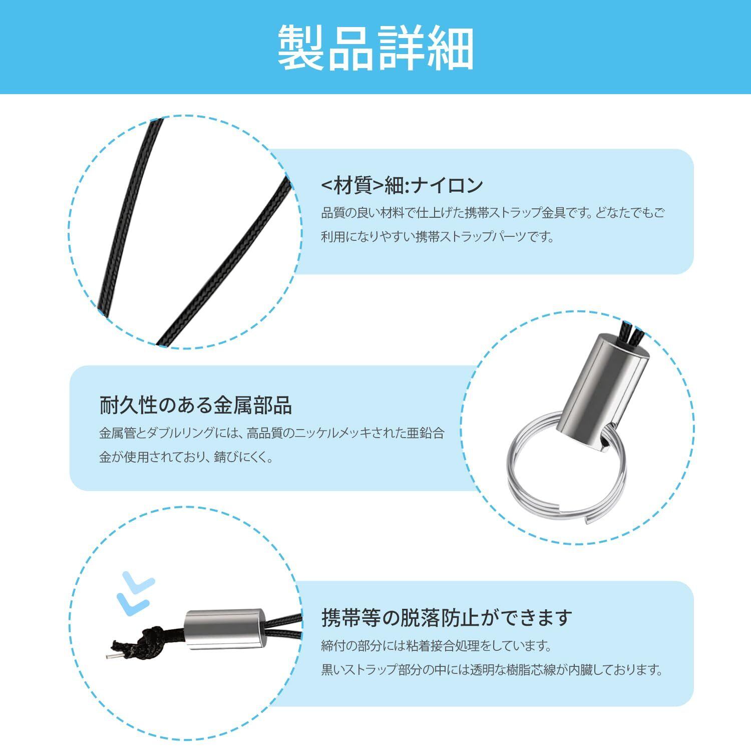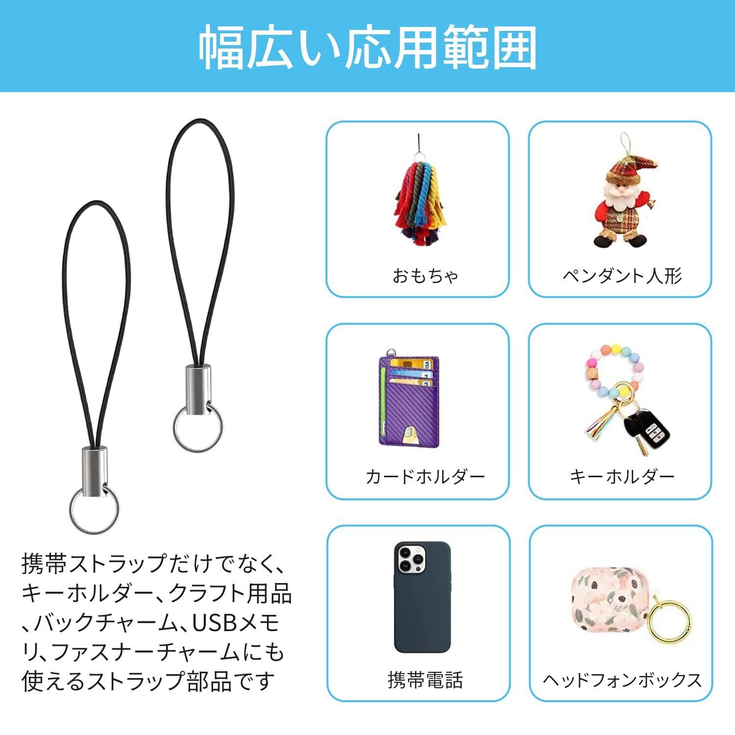 【新着商品】ストラップ 紐 二重リング ストラップ 10個入り ブラック 手作りパーツ 装飾用 リング付き 自作 DIY金具 携帯小物