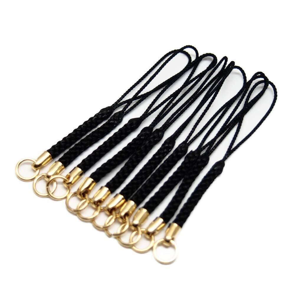 レーヨンカン付(金メッキ)根付紐 10本セット ストラップ用 ねつけ紐 お守り (黒)