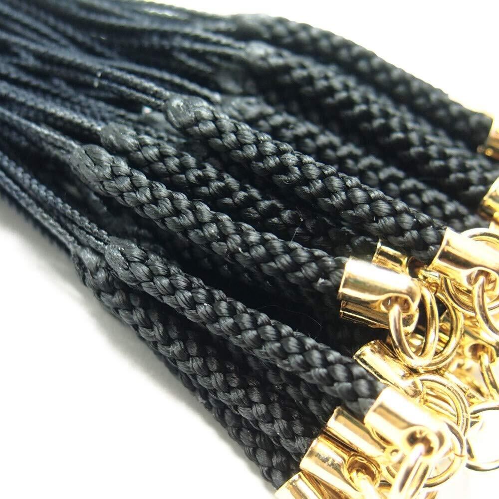 【新着商品】レーヨンカン付(金メッキ)根付紐 10本セット ストラップ用 ねつけ紐 お守り (黒)