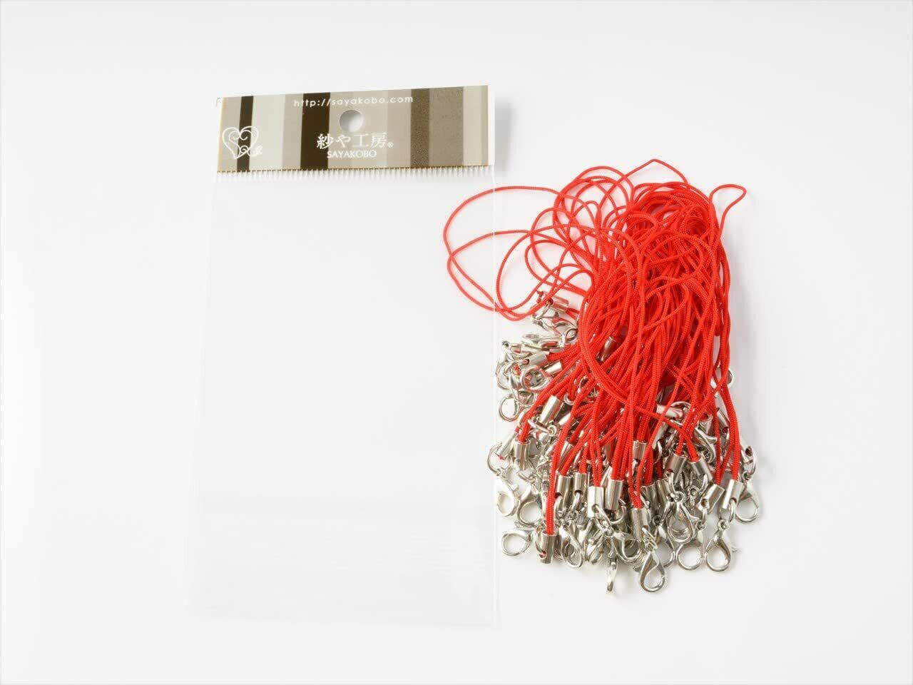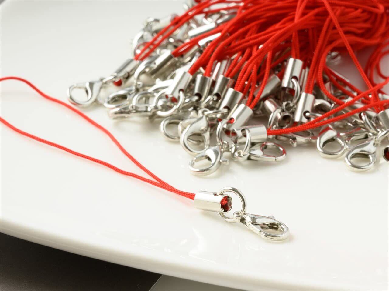 紗や工房 カニカン付き携帯ストラップ赤×銀シルバー 約50本