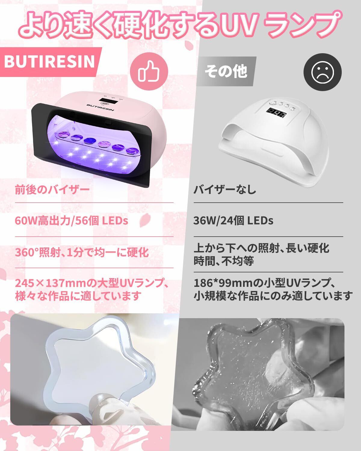 完璧なレジン作品を作る: BUTIRESIN UVランプを使用すると、初心者でも簡単に完璧なレジン作品を作成でき、収縮を軽減できます。大規模な工事の場合、作業時間を短縮できます。