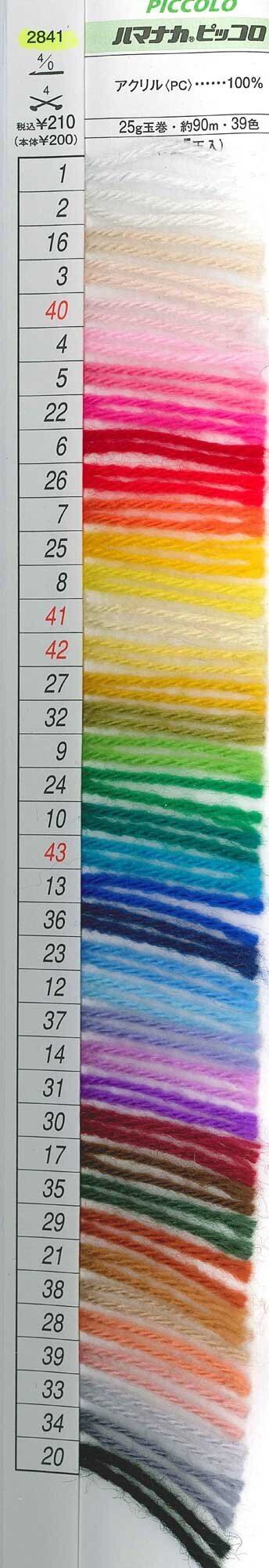 【特価セール】ハマナカ ピッコロ 毛糸 中細 col.1 ホワイト 系 25g 約90m 5玉セット 2841