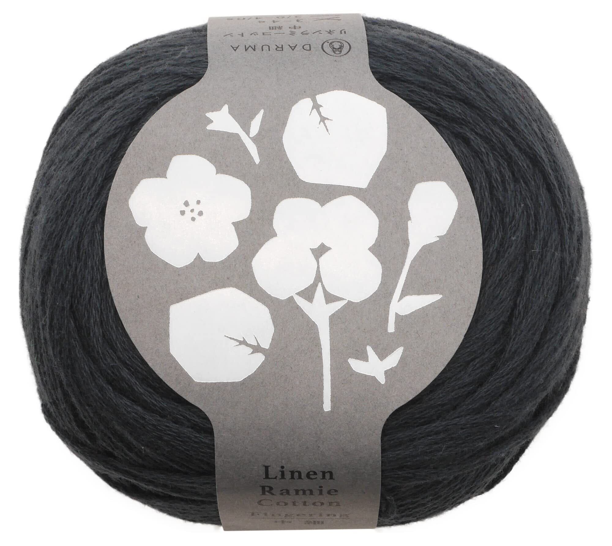 DARUMA 手編み毛糸 リネン ラミー コットン 中細 COL. 109 インクブラック 約 50g 201m 4210