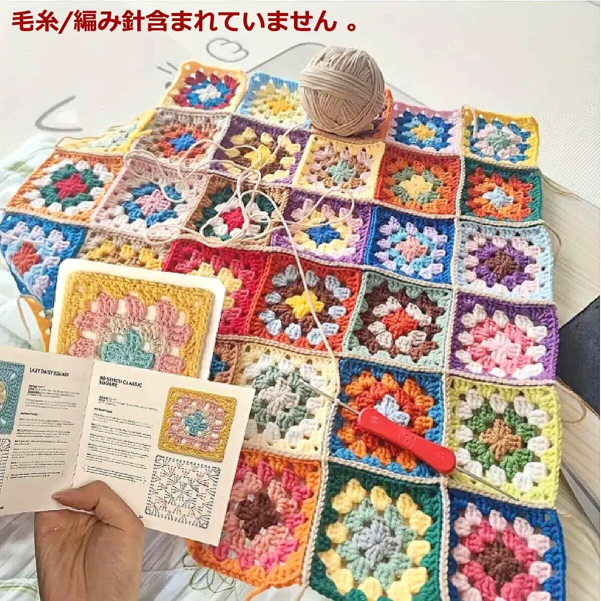 ・【初心者にもおすすめ!】: わかりやすいかぎ針編みパターンが付属しているため、初心者の方でも気軽に取り組めます。基本的な技術を学びながら、魅力的なグラニースクエアを完成させるワクワク感を味わってください!