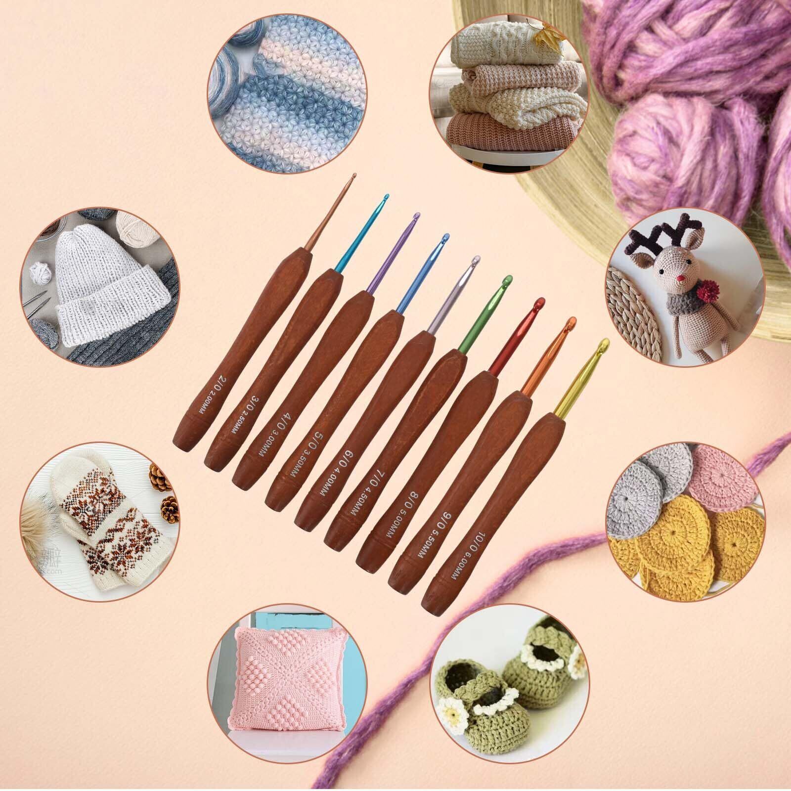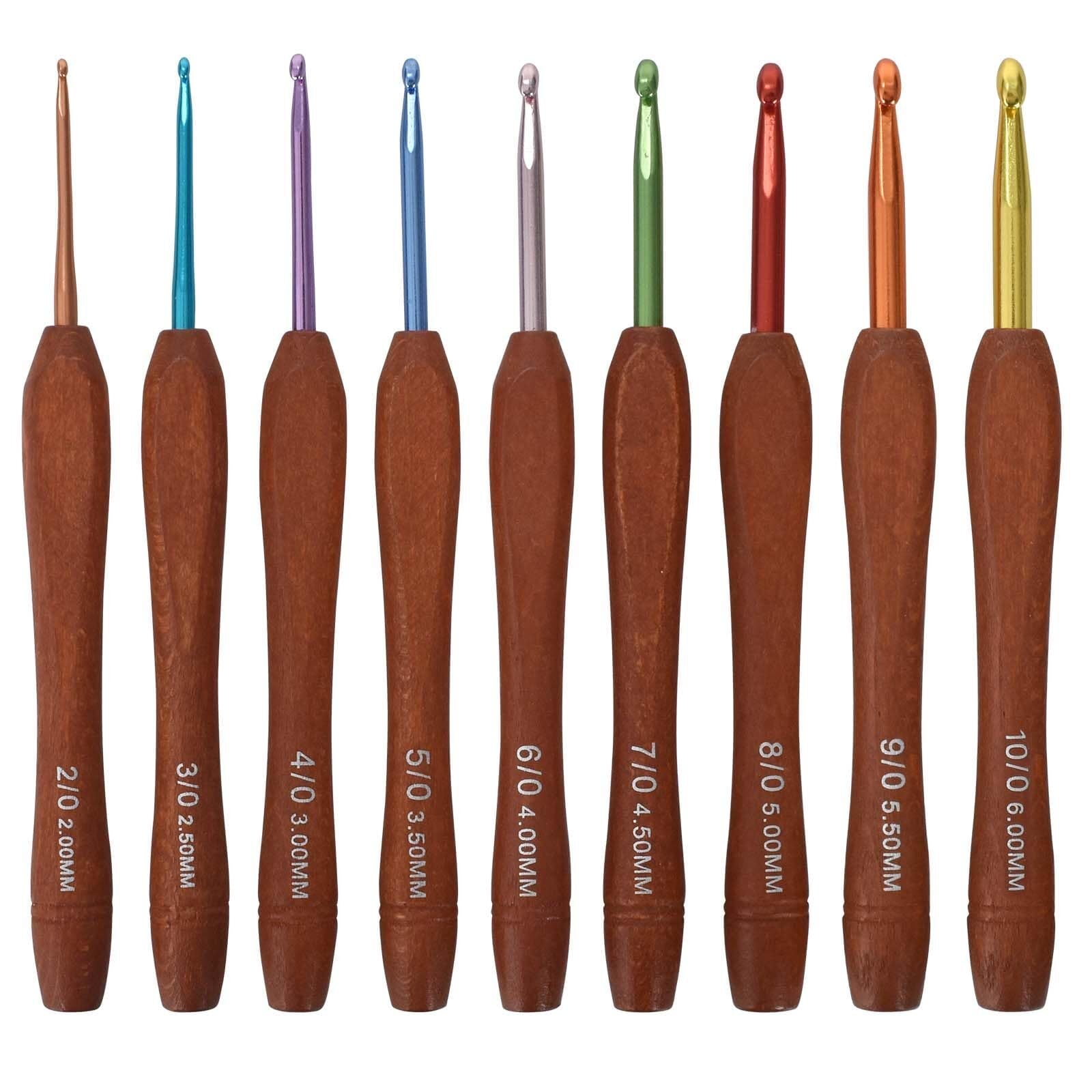 【特価商品】9個かぎ針編みフックセット 2.0-6.0mm 木製ハンドル かぎ針編み 人間工学的かぎ針フックかぎ針セット編み針 編み物 レース針 毛糸 DIY 手芸 工具 関節炎の手用 エクストラライト編み針 かぎ針編み糸クラフト用 | wakuwakuland