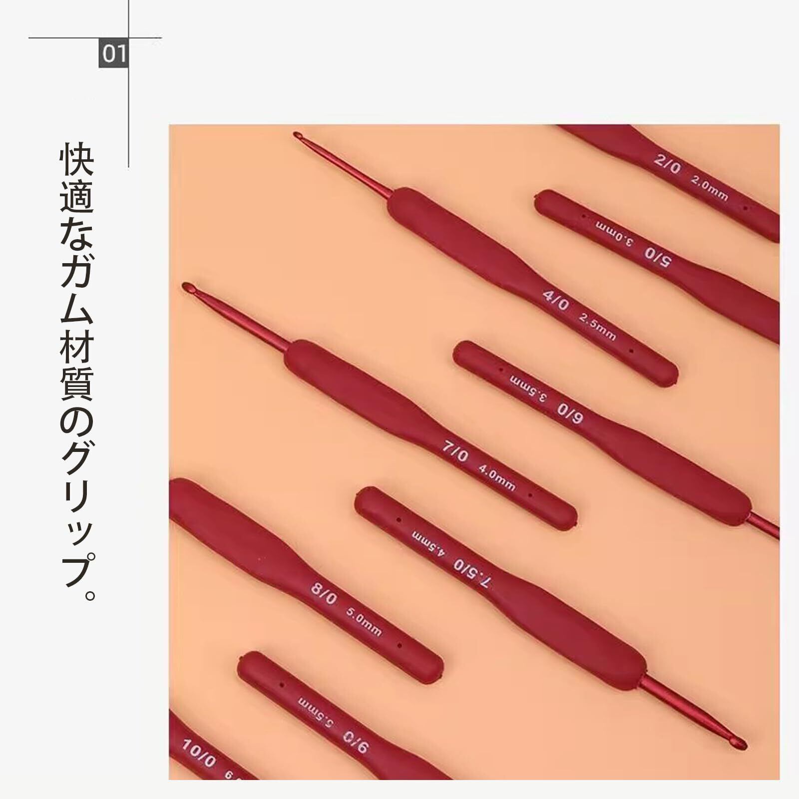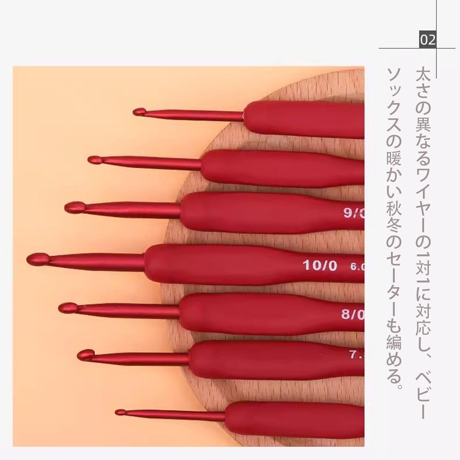 Akkerds 編み針 ソフトシャンクかぎ針 赤 毛糸DIY ファブリックツール 4/0号 8/0号