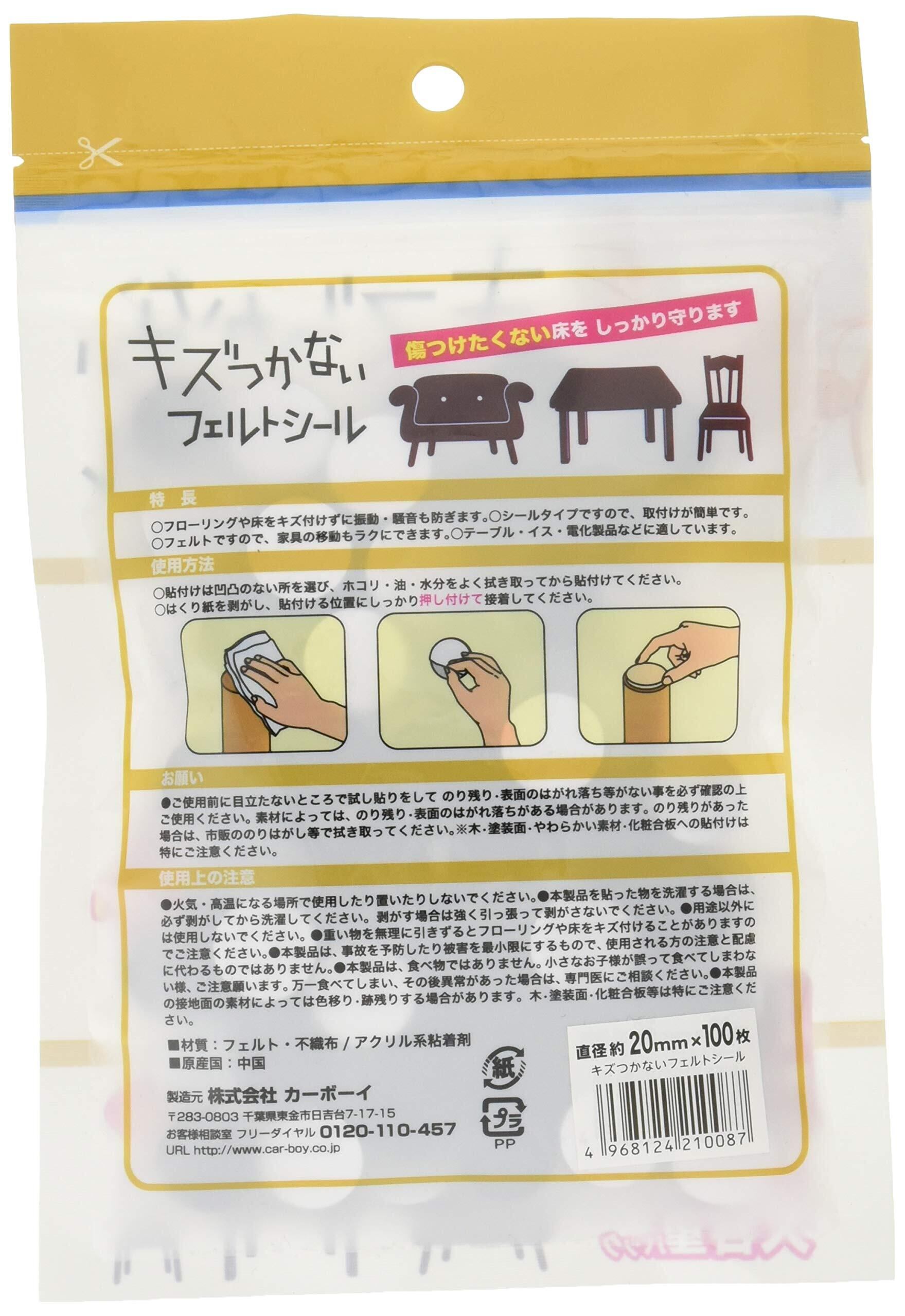 カーボーイ キズつかない フェルトシール 丸型 20mm 100枚入 茶