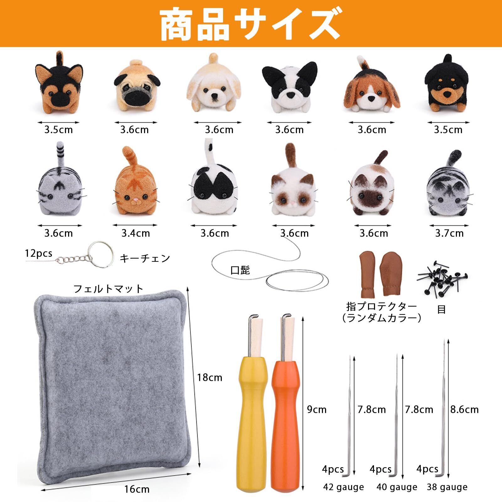 DIY可能で使いやすい: 羊毛フェルト キットは高品質な鉄素材を採用しておるので、耐久性が優れている操作簡単です。1つの動物を約3〜5時間で作成でき、操作が簡単で使いやすいフェルトツールキットで12種類の犬と猫を作成できます。ご注意: 弊社のマニュアルとビデオチュートリアルで使用されている言語は英語でございます