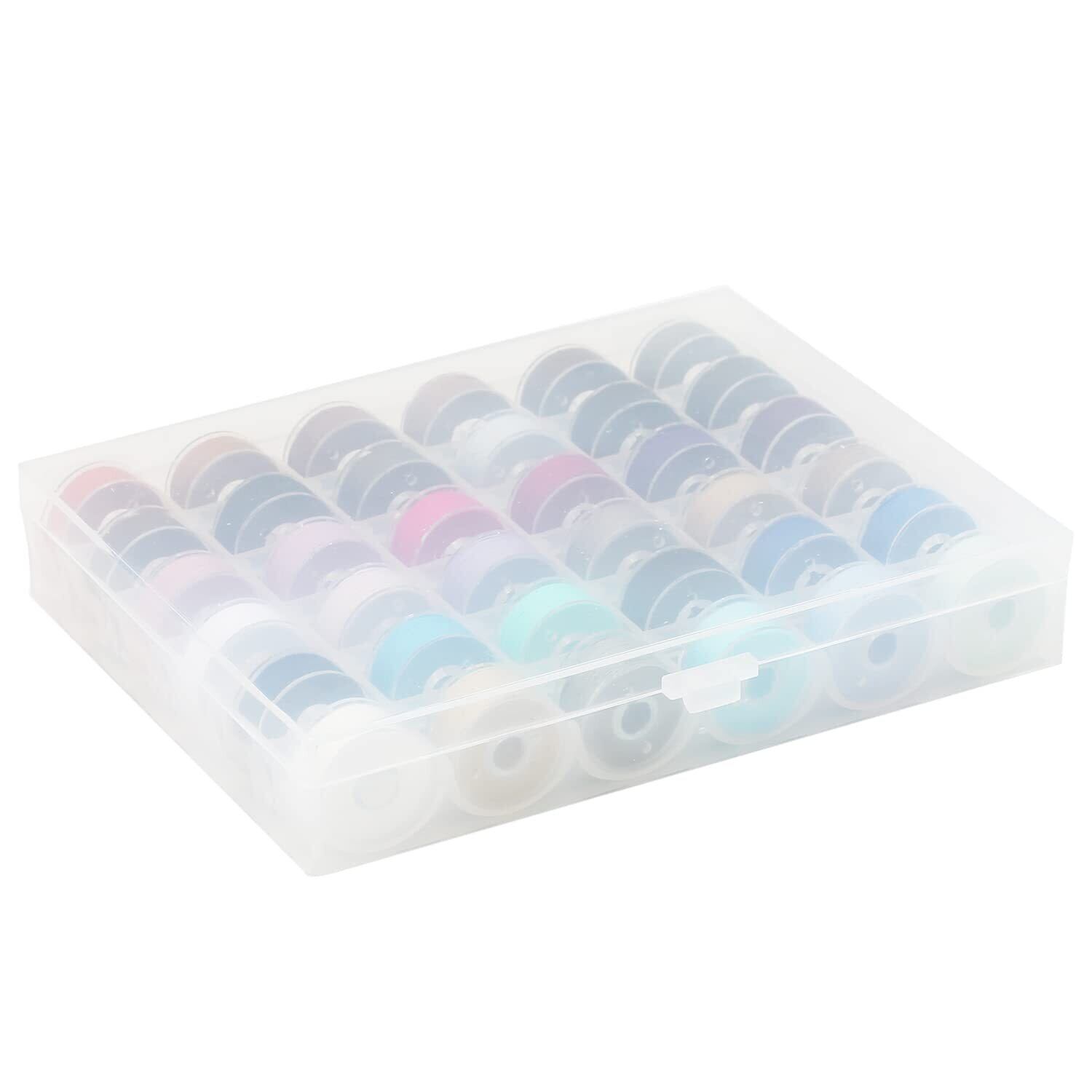 ブルー、水色、ミント、カーキ、紺、ブラック、ブラウン、グレーなどの使用頻度が高い常備36色の糸セットで、様々なニーズを満たせ便利なボビンセットです。 収納箱も付きます。